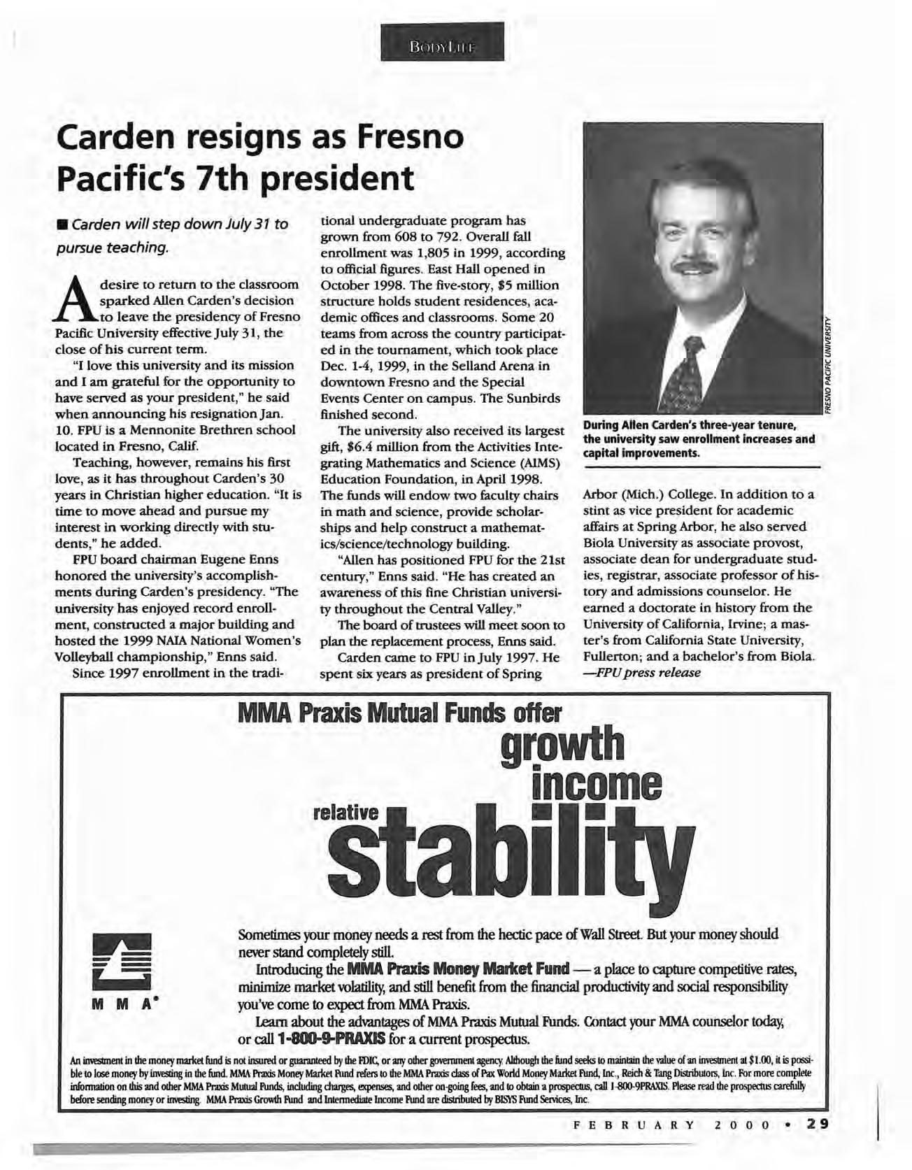 Mennonite Brethren Collegiate Institute invites applications for the position of Principal for the start of the 2000/2001 academic year. M.B.C.!. has a student body of 560 (7-Senior IV) and a professional staff of 40 teachers. Please address inquiries and applications to Search Committee by February 29, 2000. Address: 180 Riverton Avenue, Winnipeg, Manitoba R2L 2E8; fax: (204)661-5091; e-mail: mbcis@mbnet.mb.ca