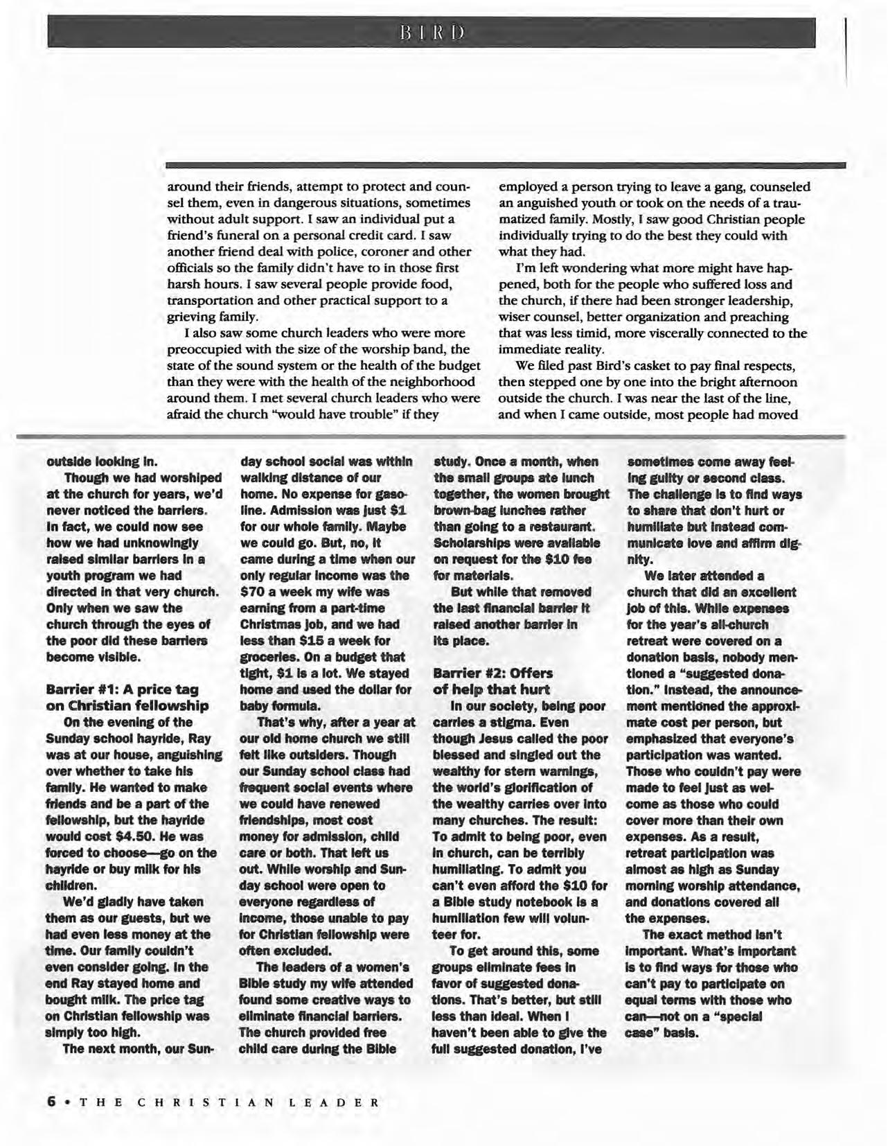 The difference? We were poor now. And as a poor family attending a middleclass church, we had run Into an obstacle course of barriers that kept us on the