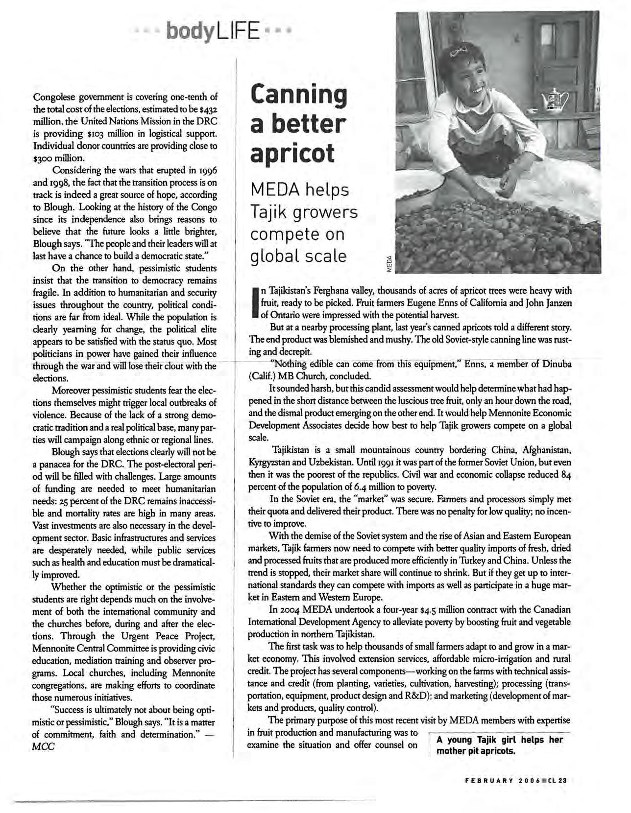 Recent issues of the Leader (November 2005) and the MB Herald (Sept. 23, 2005) have highlighted needs in the DR Congo and raised the question of what Mennonite Brethren can do if we care. Bakerview's mission project demonstrates in a small way that we do care.