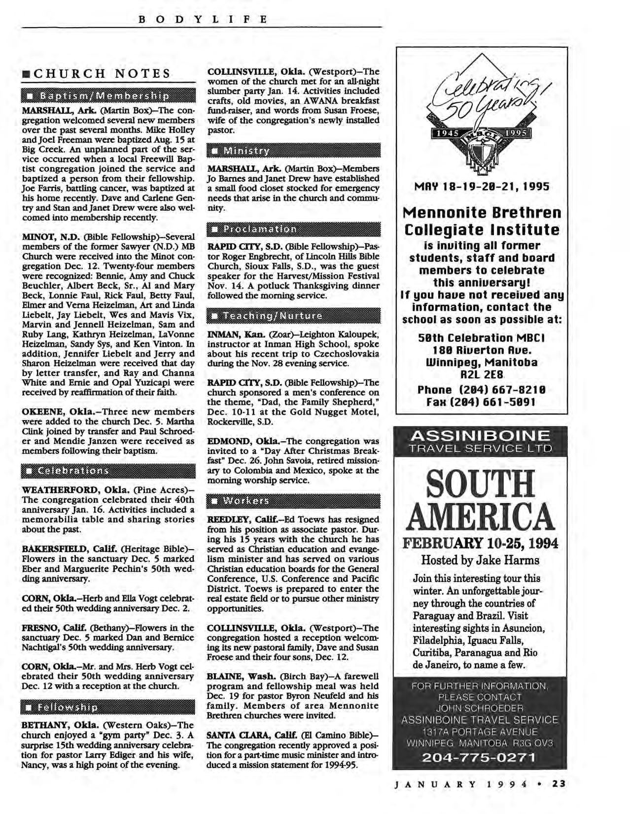 MANDATE: THE CHRISTIAN LEADER (ISSN 0009 , 5149), organ of the U S. Conference of Mennonite Brethren Churches, is published monthly by the U.S Conference Board of Communications, 315 S. Lincoln, Hillsboro, KS 67063. The Christian Leader seeks to inform Mennonite Brethren members and churches of the events, activities, decisions, and issues of their denomination, and to instruct, inspire and initiate dialog so that they will aspire to be faithful disciples of Christ as understood in the evangelical!Anabaptist theological tradition.