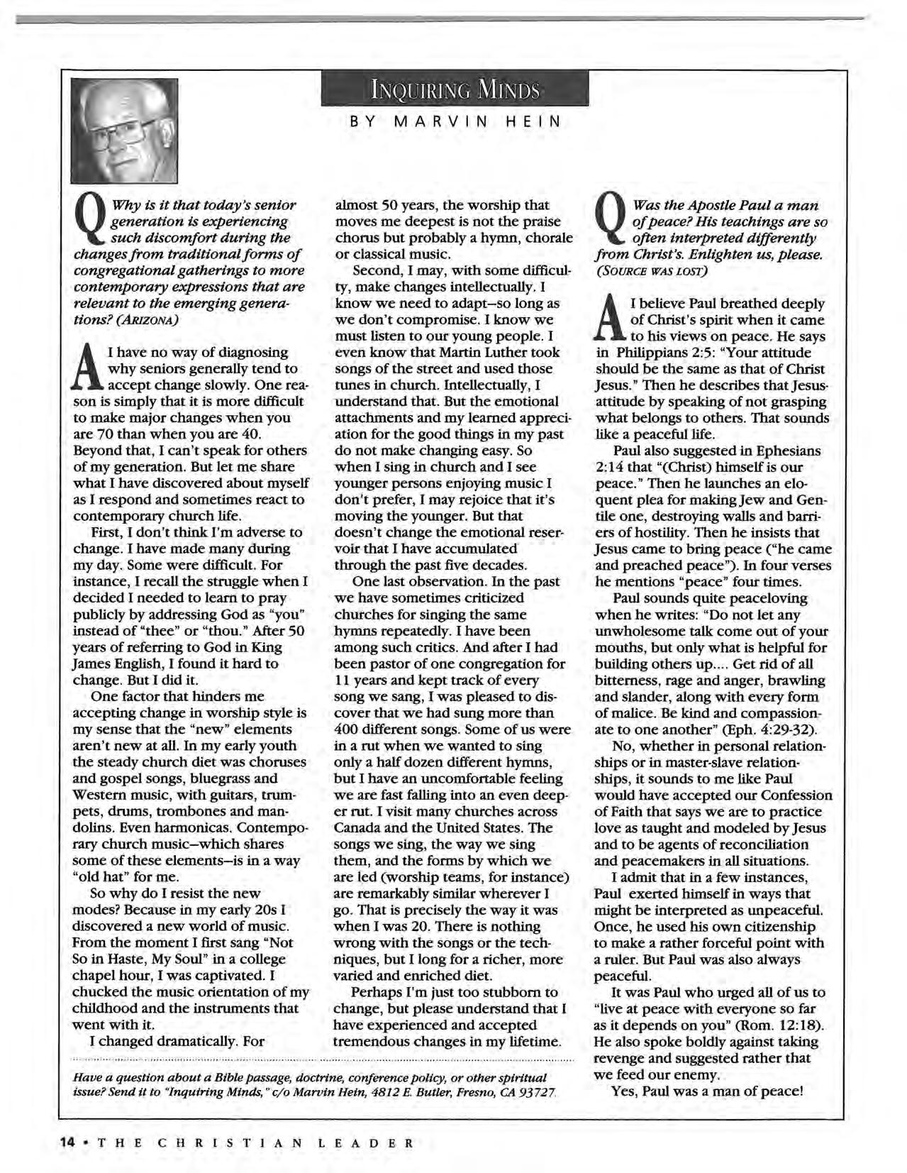 COMMUNICATION: All correspondence should be addressed to The Christian Leader Box V Hillsboro. KS 67063 Phone: (316) 947-5543. Fax : (316) 9473266