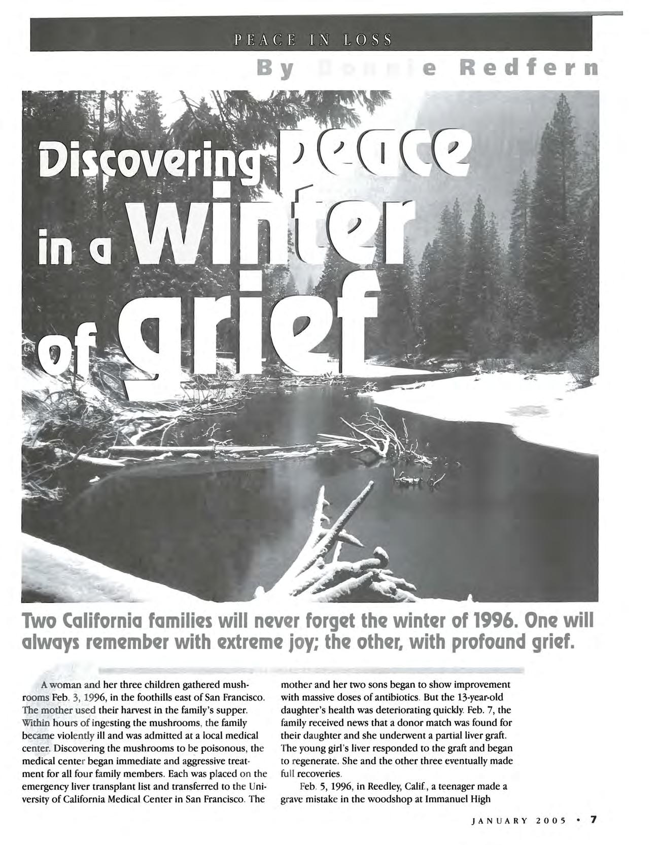 Two California families will never forget the winter of 1996. One will always remember with extreme joy; the other. with profound grief.