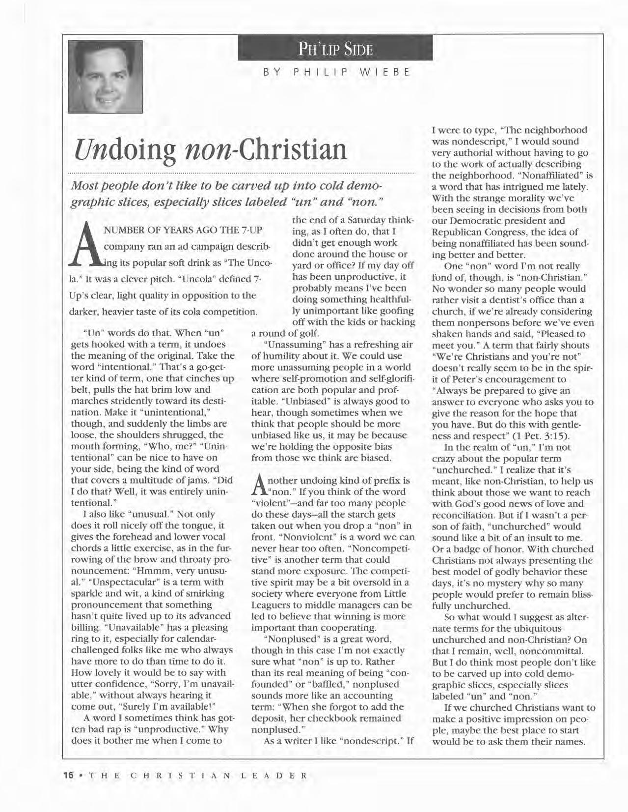 AVE YOU EVER WONDERED WHY PICTURES OF little country churches often grace Christfilas cards, but filegachurch facilities never do? Or "Why it's such a high cOfilplifilent for SOfileone visiting a big suburban church to say, "This feels like a sfilall church"? Yes, there is sOfilething special about the sfilall-to"Wn church.