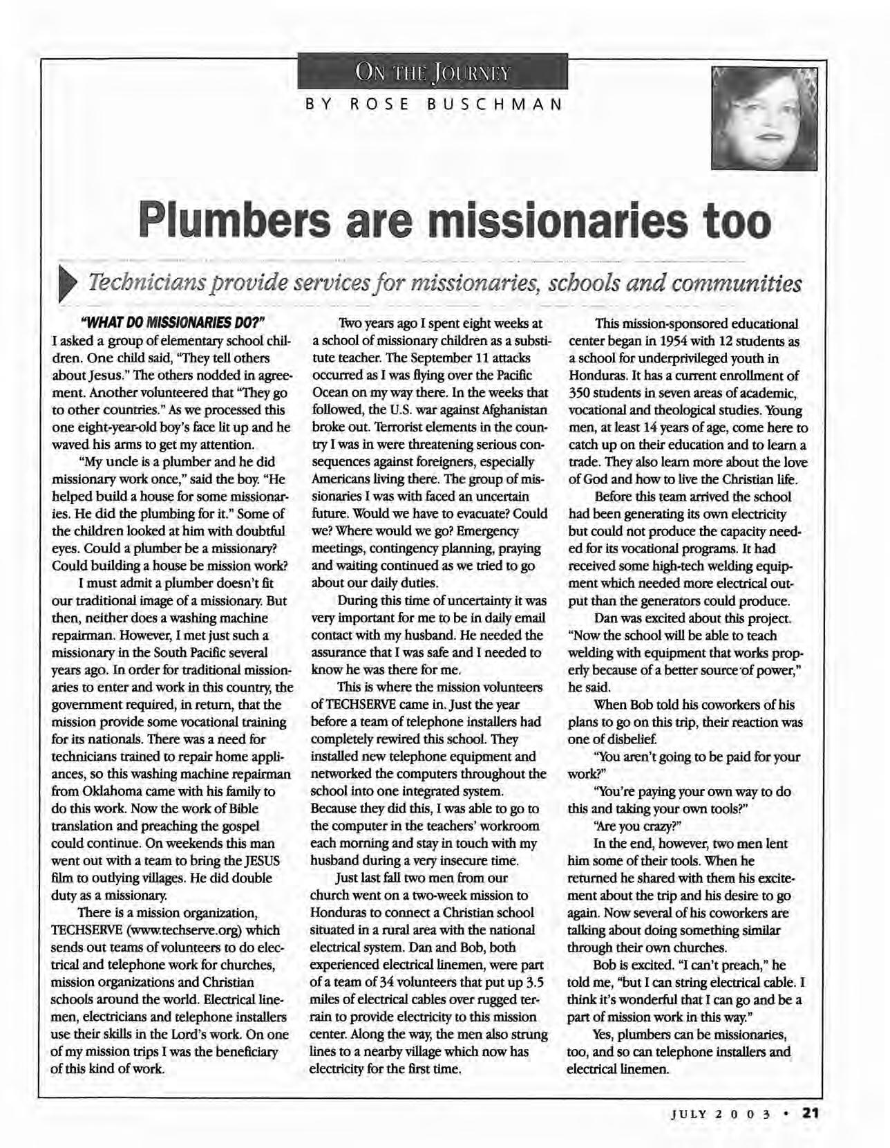 ⢠Plumbers are missionaries too Chuck's Corner by Chuck Buller 22