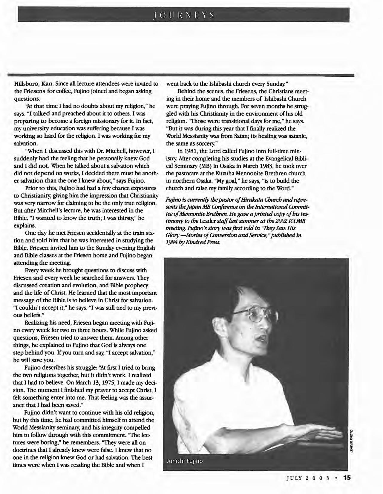 14 Coming to the light of Christ Junichi Fujino was preparing himself for ministry in a heretical sect when he became a Christian. Today his goal is to build Christ's church.