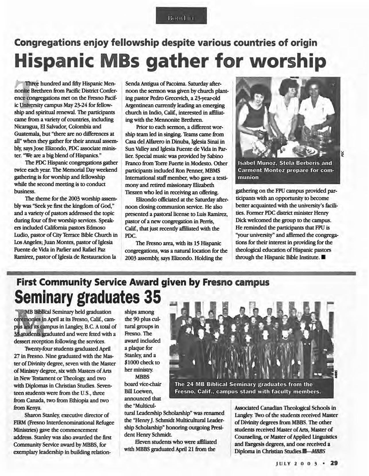 Kan., and Fuller Theological Seminary in Pasadena, Calif. He has held many leadership positions in the Indian MB Conference and has represented the conference in international gatherings. Because of his health he was not planning to attend Men-