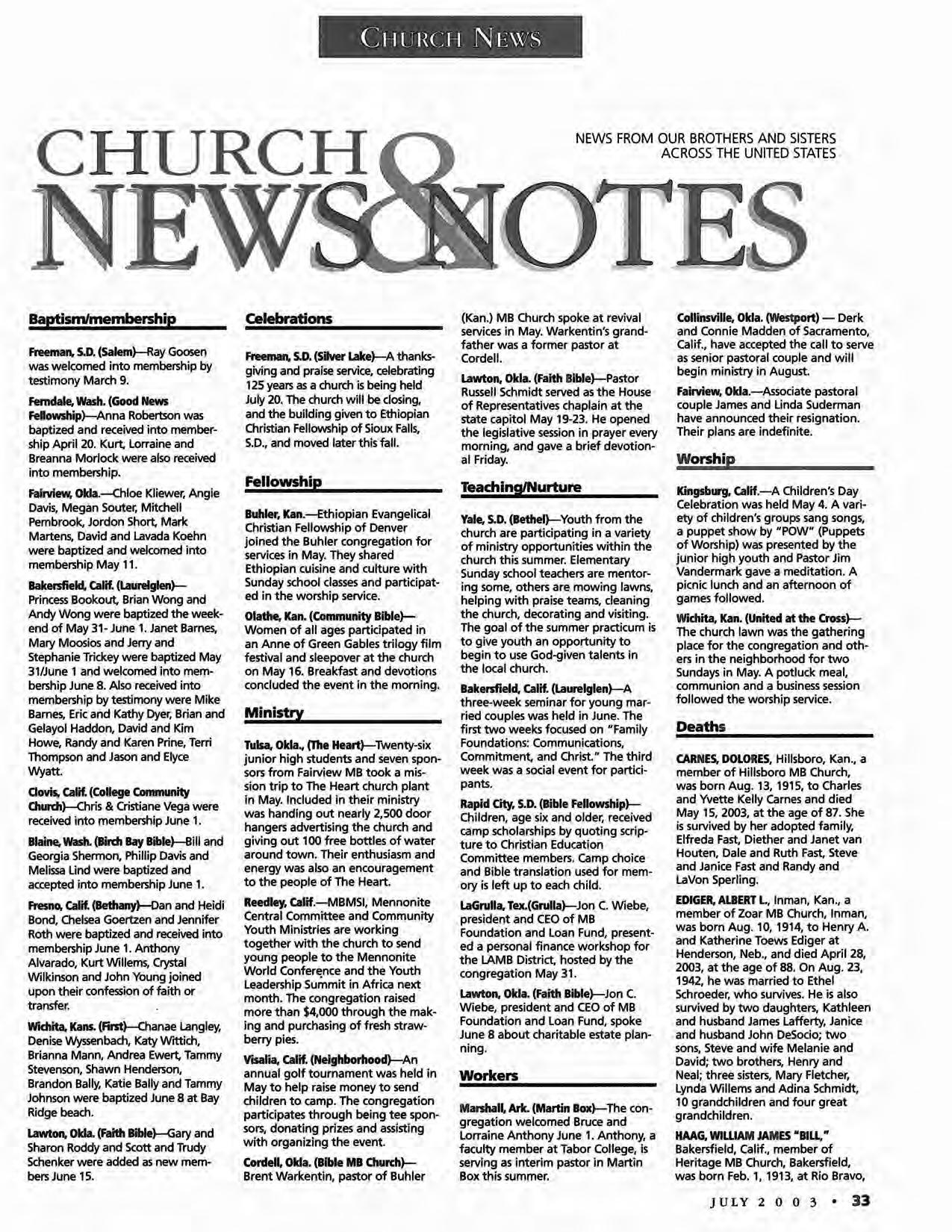(Kan.) MB Church spoke at revival services in May. Warkentin's grandfather was a former pastor at Cordell.