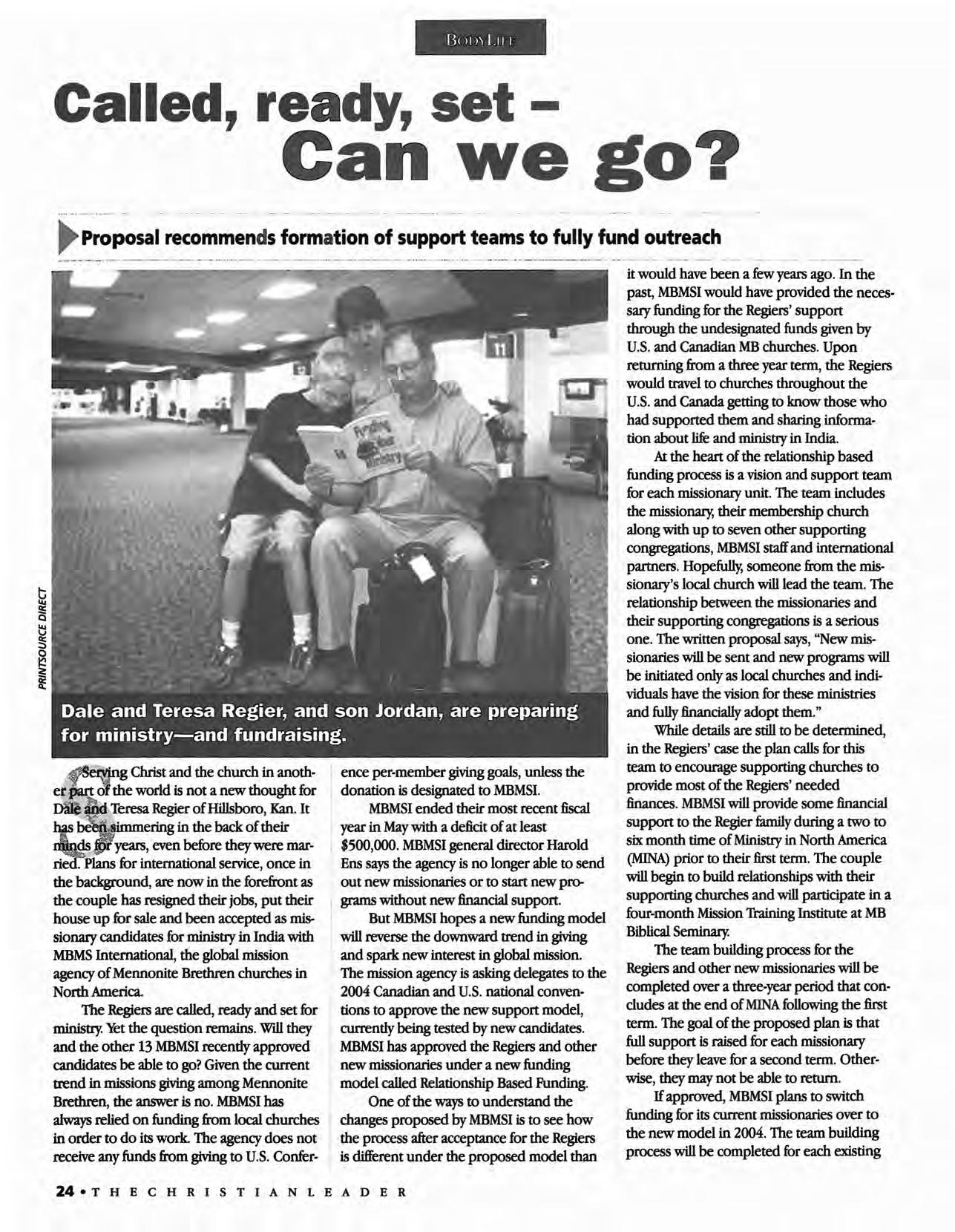 Two issues with which we Mennonite Brethren are currently wrestling are highlighted in the news section. Funding decreases have prompted MBMS International, our North American mission agency, to explore a new funding model that requires new missionaries to be fully funded by their supporting congregations before they leave their home country. The agency also hopes this new model will rekindle our vision for global mission. A study conference explored issues related to church membership and baptism and a report of that conference is included. While no conclusions were drawn, participants report the conversation was stimulating. Lynn Jost, a presenter at the study conference, reflects on his experience in a guest editorial.