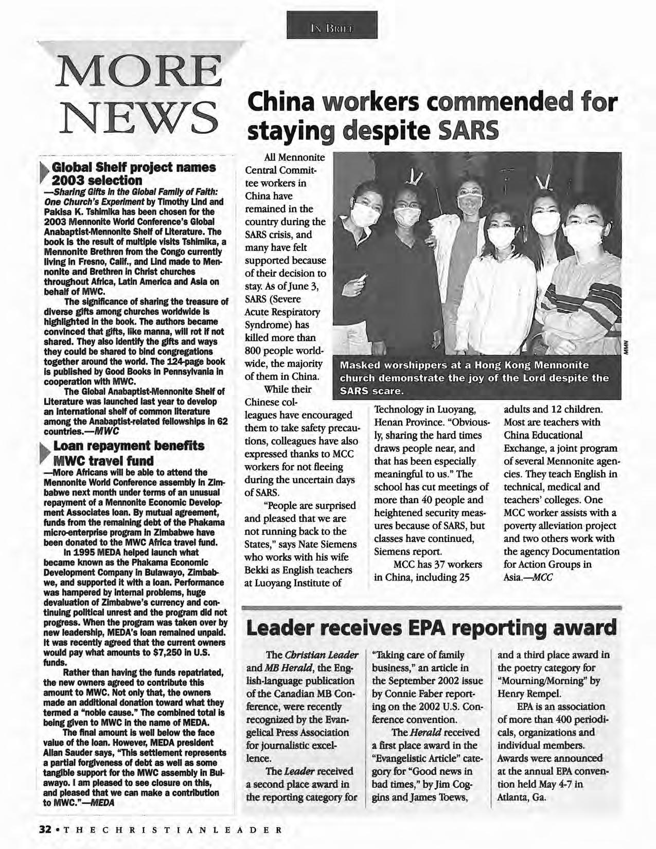 MEMBERSHIP: The Christian Leader is a member of the Evangelical Press Association and Meetinghouse, an association of Mennonite and Brethren in Christ editors.