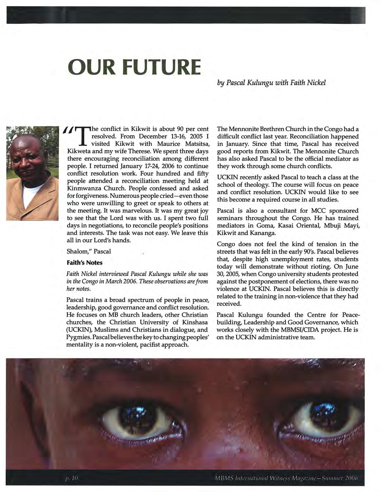Faith Nickel interviewed Pascal Kulungu while she was in the Congo in March 2006. These observations are from her notes.