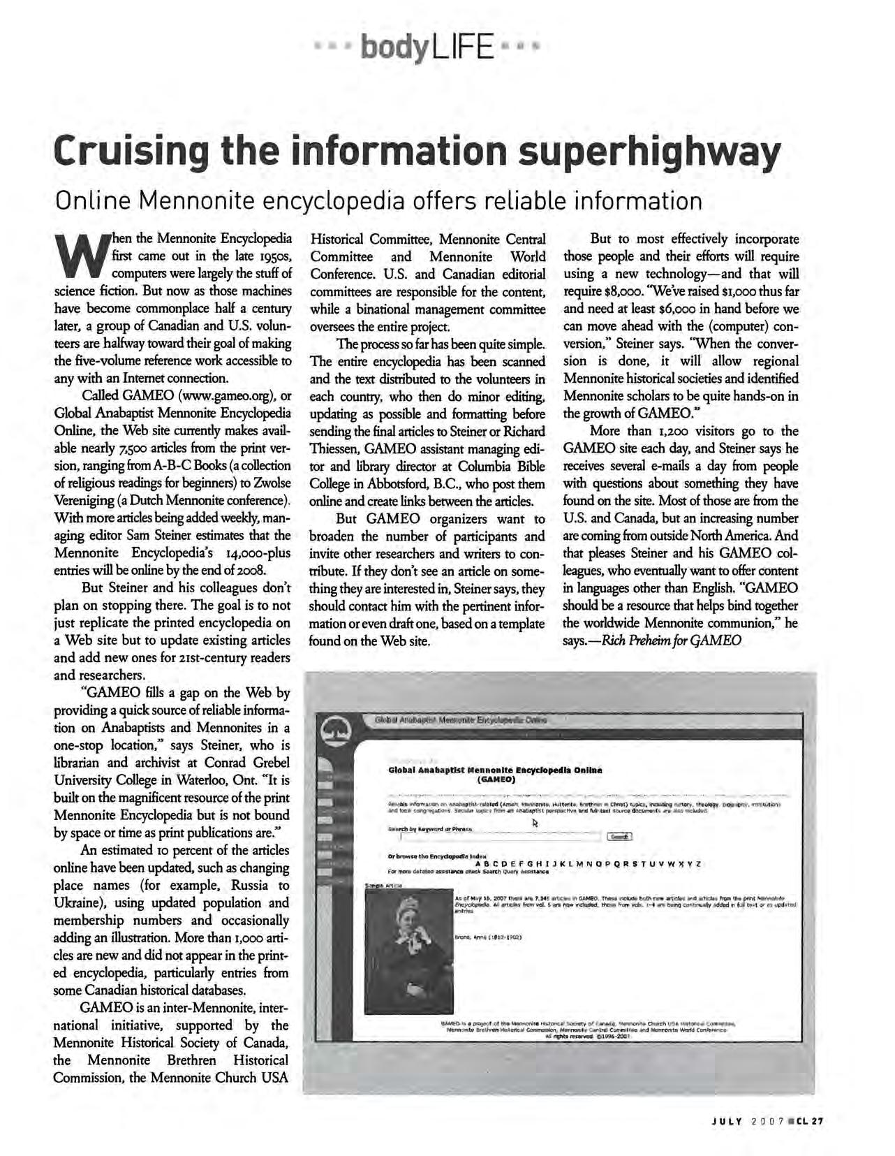 Cover photo by Megan Garden of Hutchinson. Kan Megan entered this photo of Lauren Lund at Newport Beach in the Anaheim '07 photo contest. Megan is from Buhler (Kan.) MB Church and graduated from high school this spring