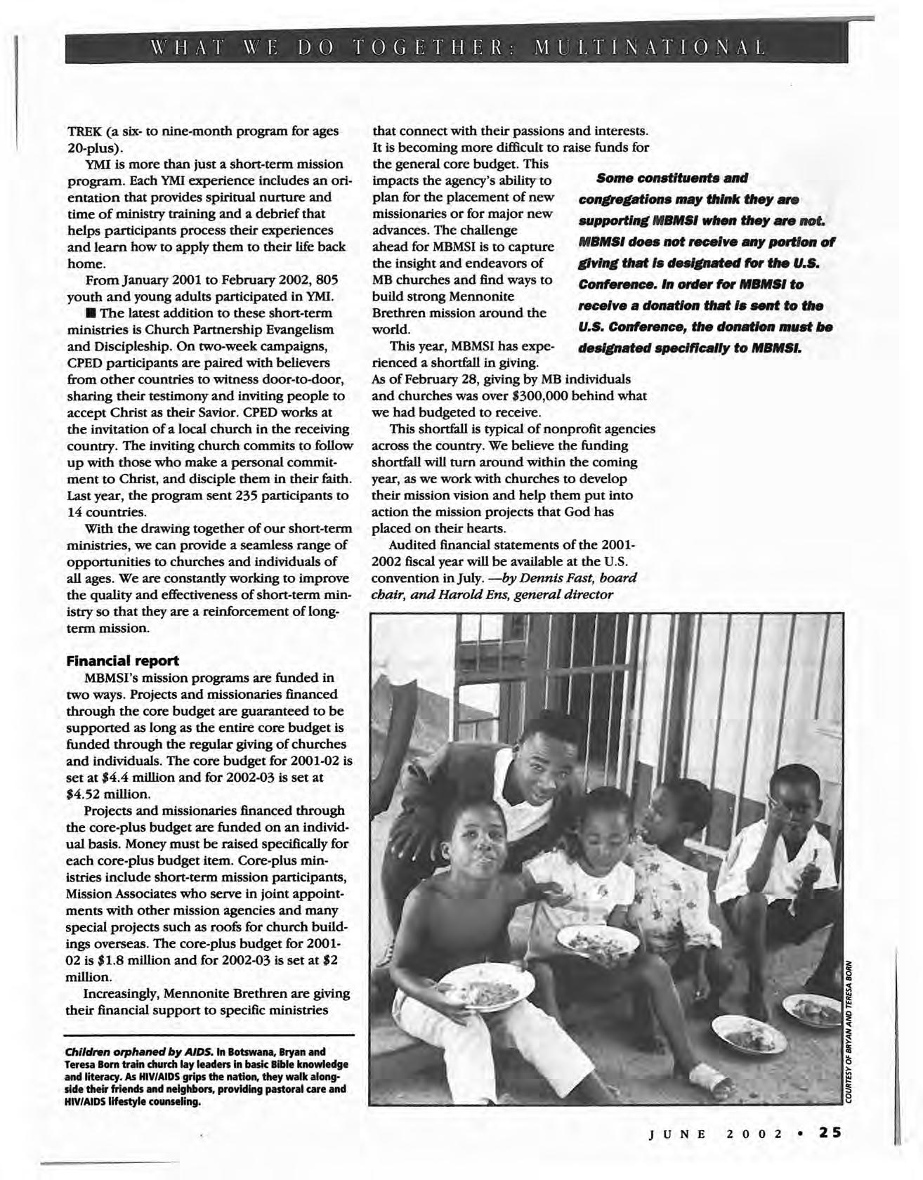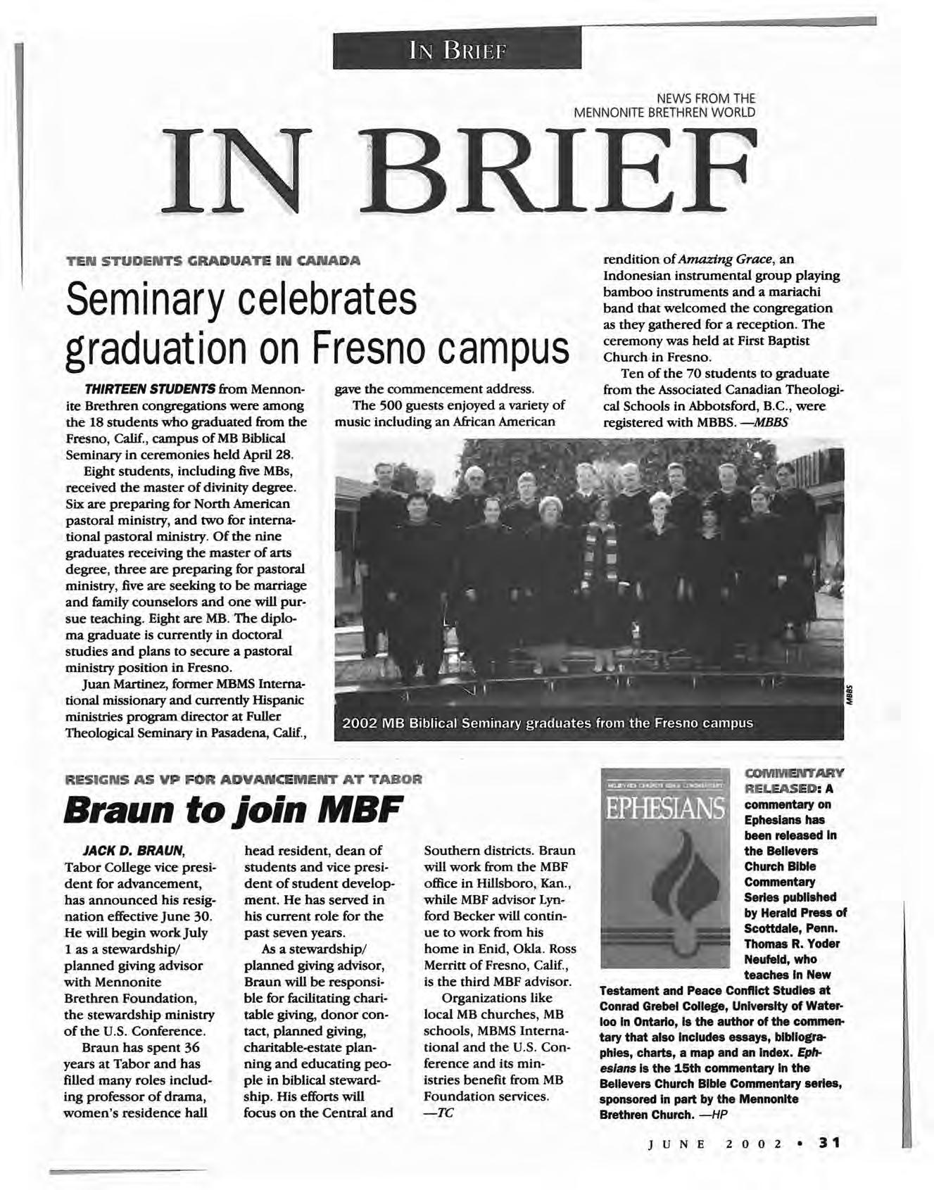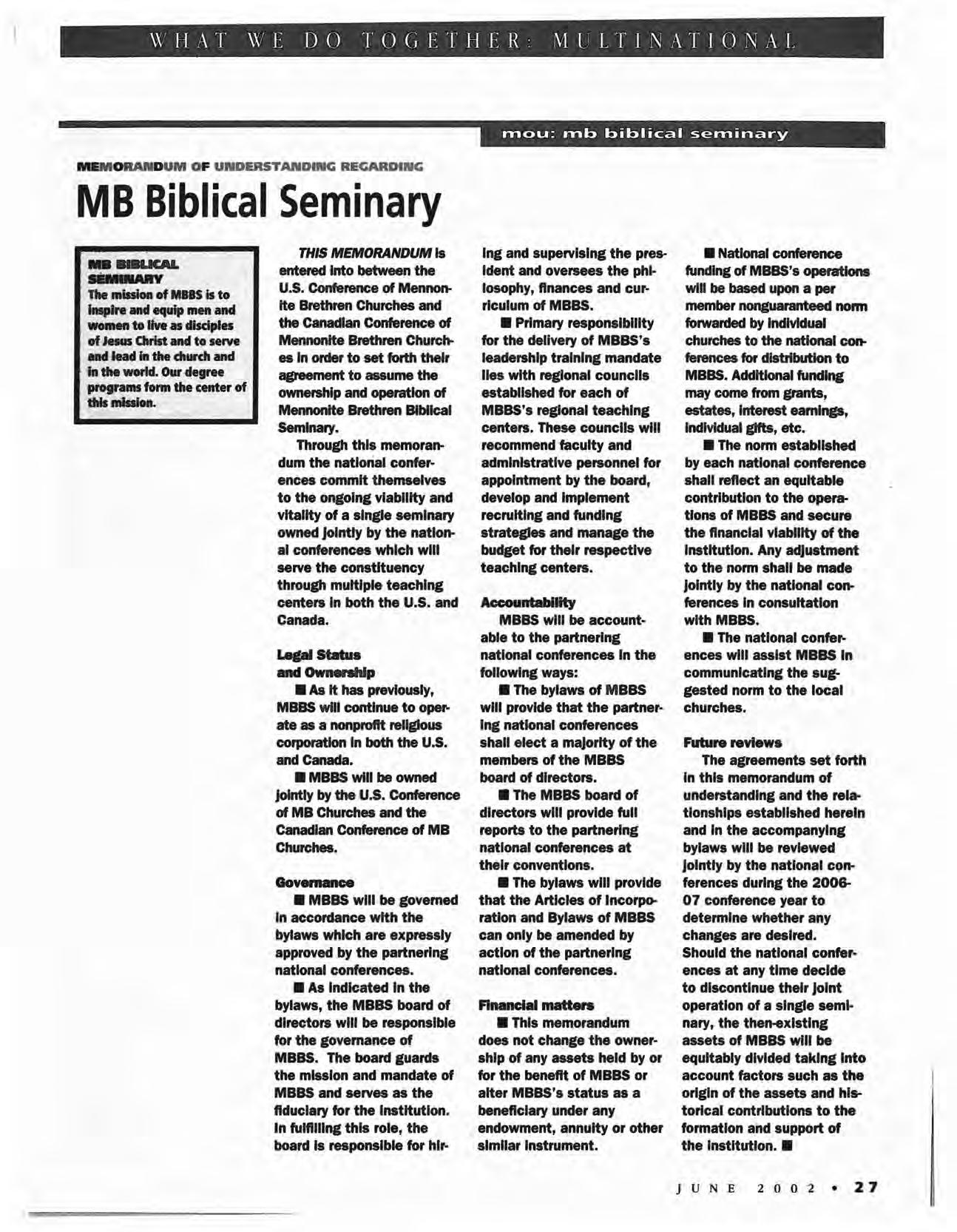 REPORTS FROM u.S. AND MULTINATIONAL MENNONITE BRETHREN MINISTRIES FOR THE 24TH BIENNIAL u.s. CONFERENCE OF MB CHURCHES CONVENTION ABBOTSFORD. B.C. JULY 25-27.2002