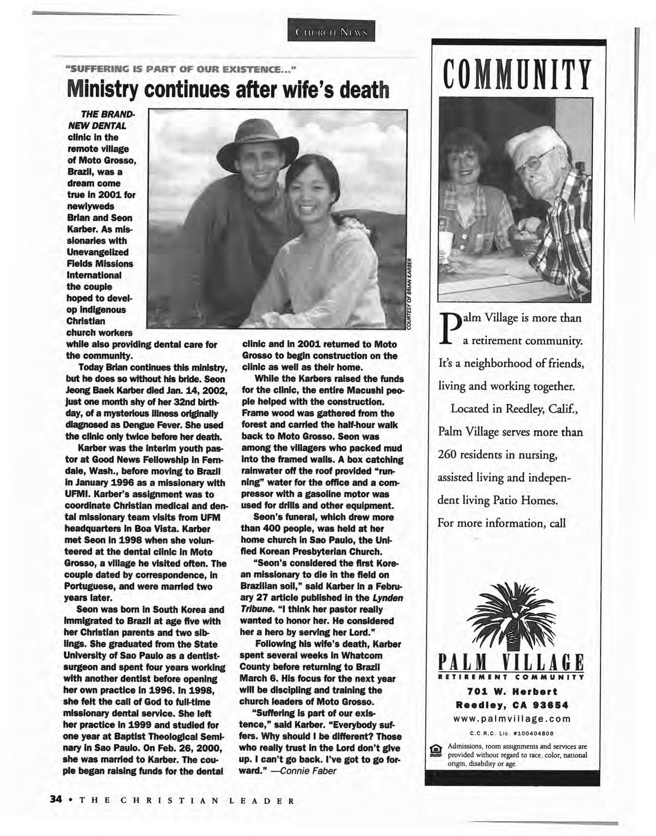 "Seon's considered the first Korean missionary to die In the field on Brazilian soli," said Karber In a February 27 article pUblished In the Lynden Tribune. "I think her pastor really wanted to honor her. He considered her a hero by serving her Lord."