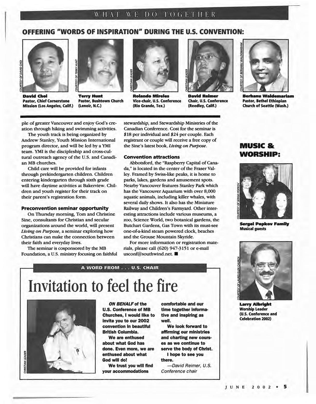 ON BEHALF of the U.S. Conference of MB Churches, I would like to Invite you to our 2002 convention In beautiful British Columbia. We are enthused about what God has done. Even more, we are enthused about what God will do!