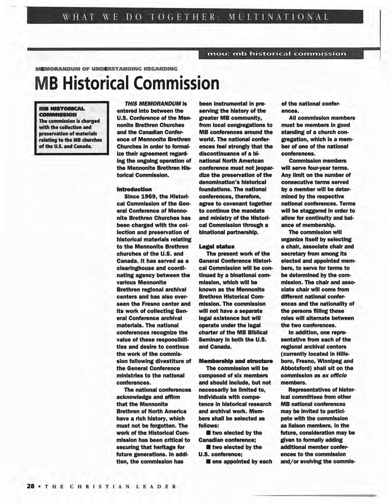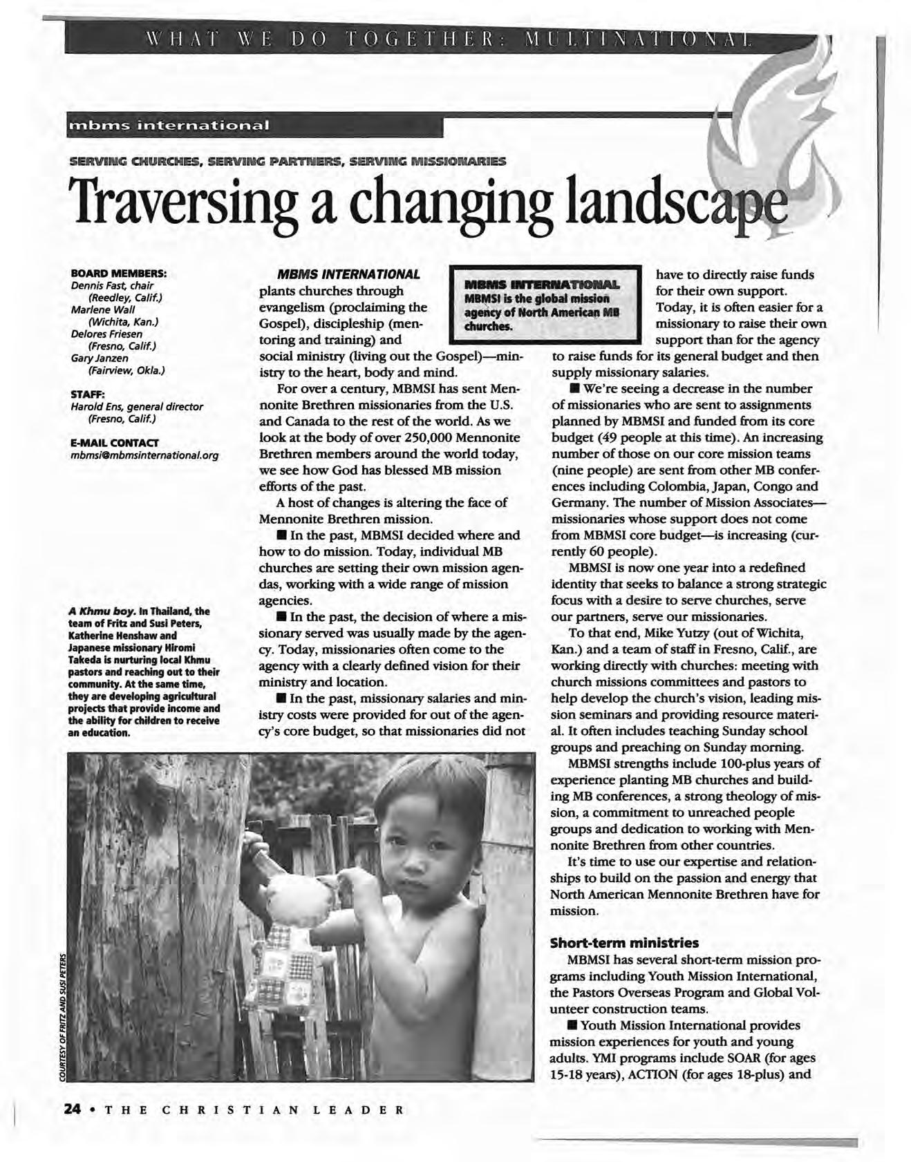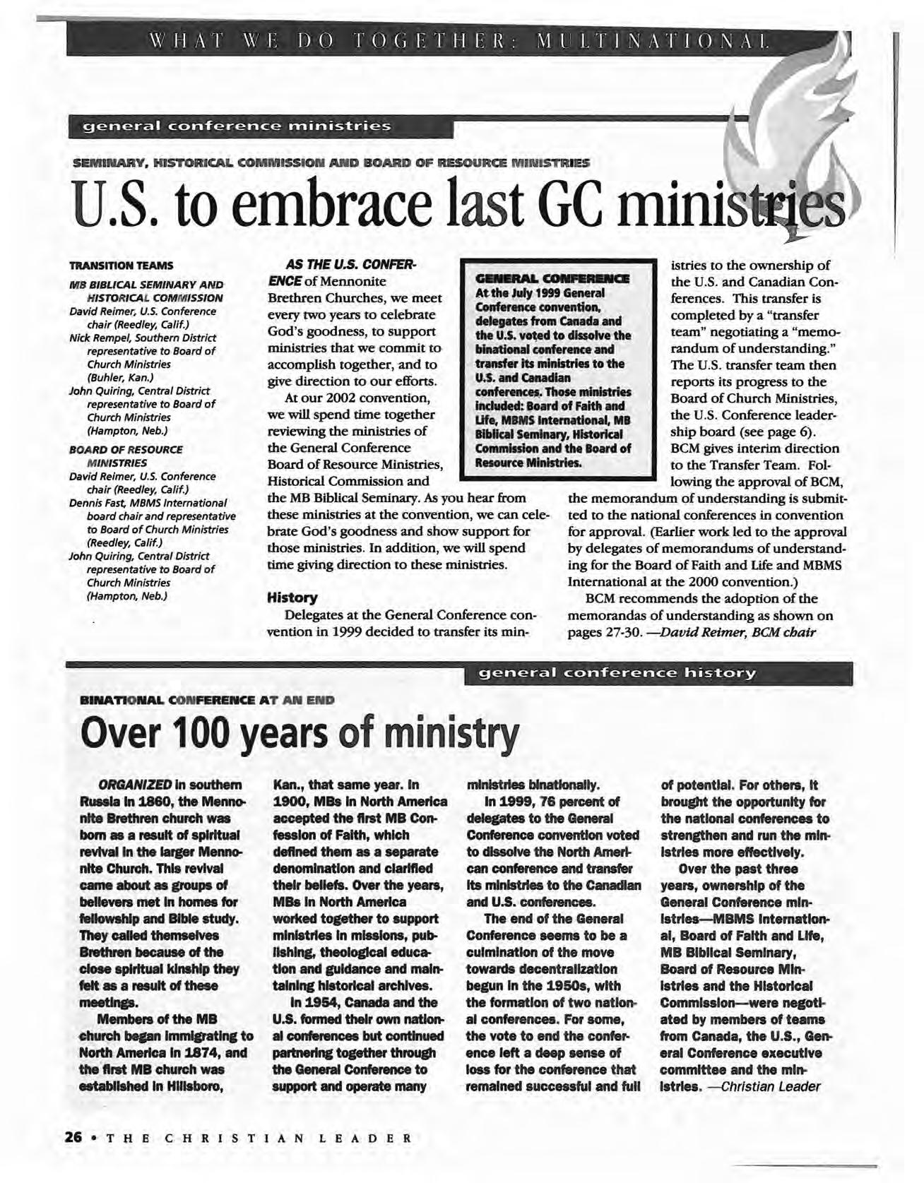 This issue of the Christian Leader highlights the wo(k of and issues facing U.S. Conference ministries and several multinational ministries U.S. MBs participate in and support.
