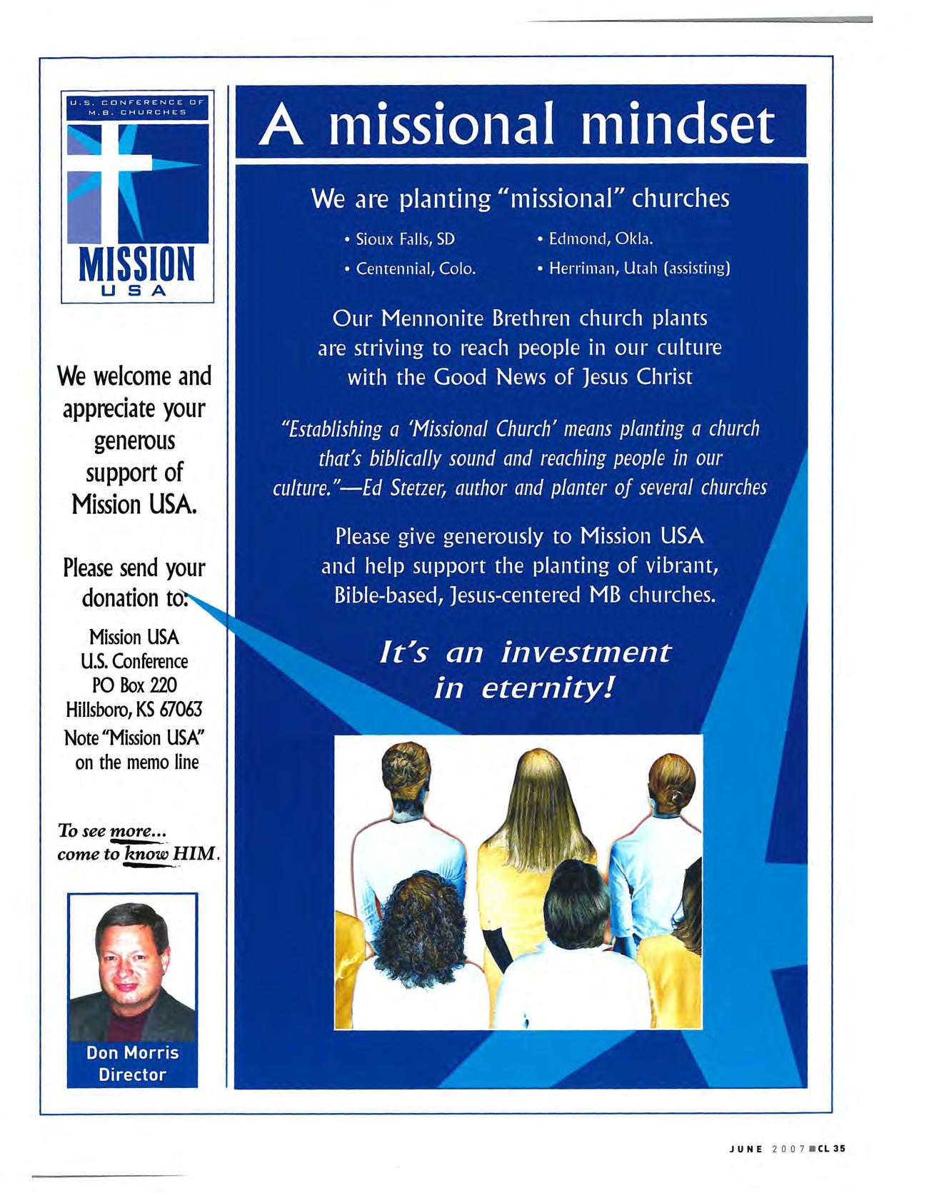 To help facilitate this goal our district Board of Trustees has established an endowment fund with the MB Foundation The objective is to reach $1,000.000 or more and designate the interest accumulated each year to be used for church planting. We are getting close!