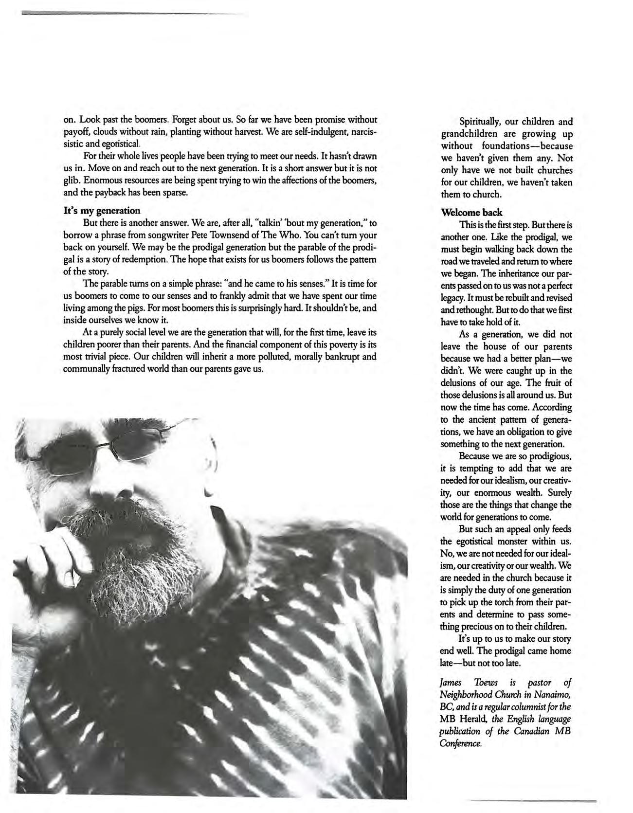 English-language publication of the Canadian MB Conference, received a second place award in the interview anicle category and third place in the poetty division. EPA is an association of more than 375 publications, organizations and individual members. The awards were announced at the annual EPA convention held May 2-4 in Colorado Springs, Colo