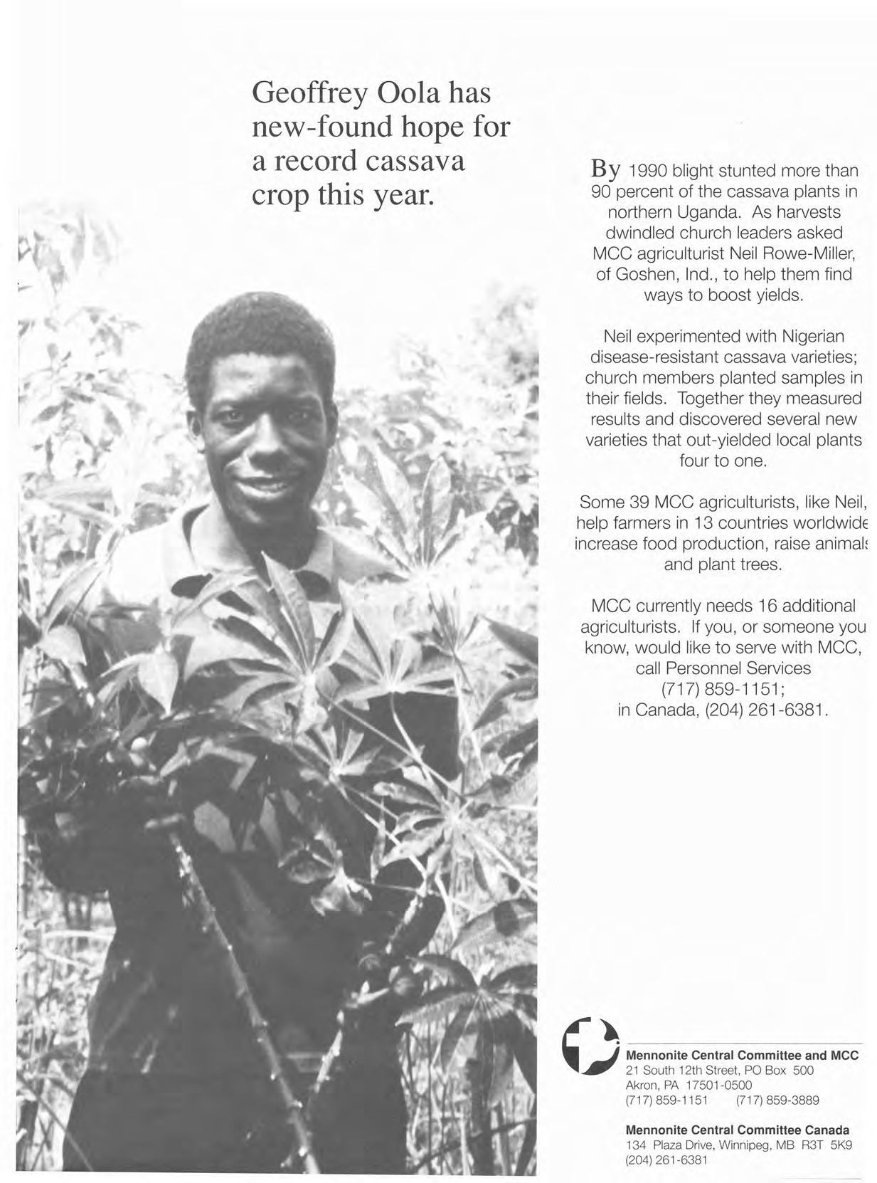 To apply, contact your regional or provincial MCC office or Goldie Kuhns, 21 South 12th Street, P.O. Box 500, Akron, PA 17501-0500, phone (717) 8591151. In Canada contact MCC Canada Personnel, 134 Plaza Drive, Winnipeg, MB R3T 5K9; phone (204) 261-6381.
