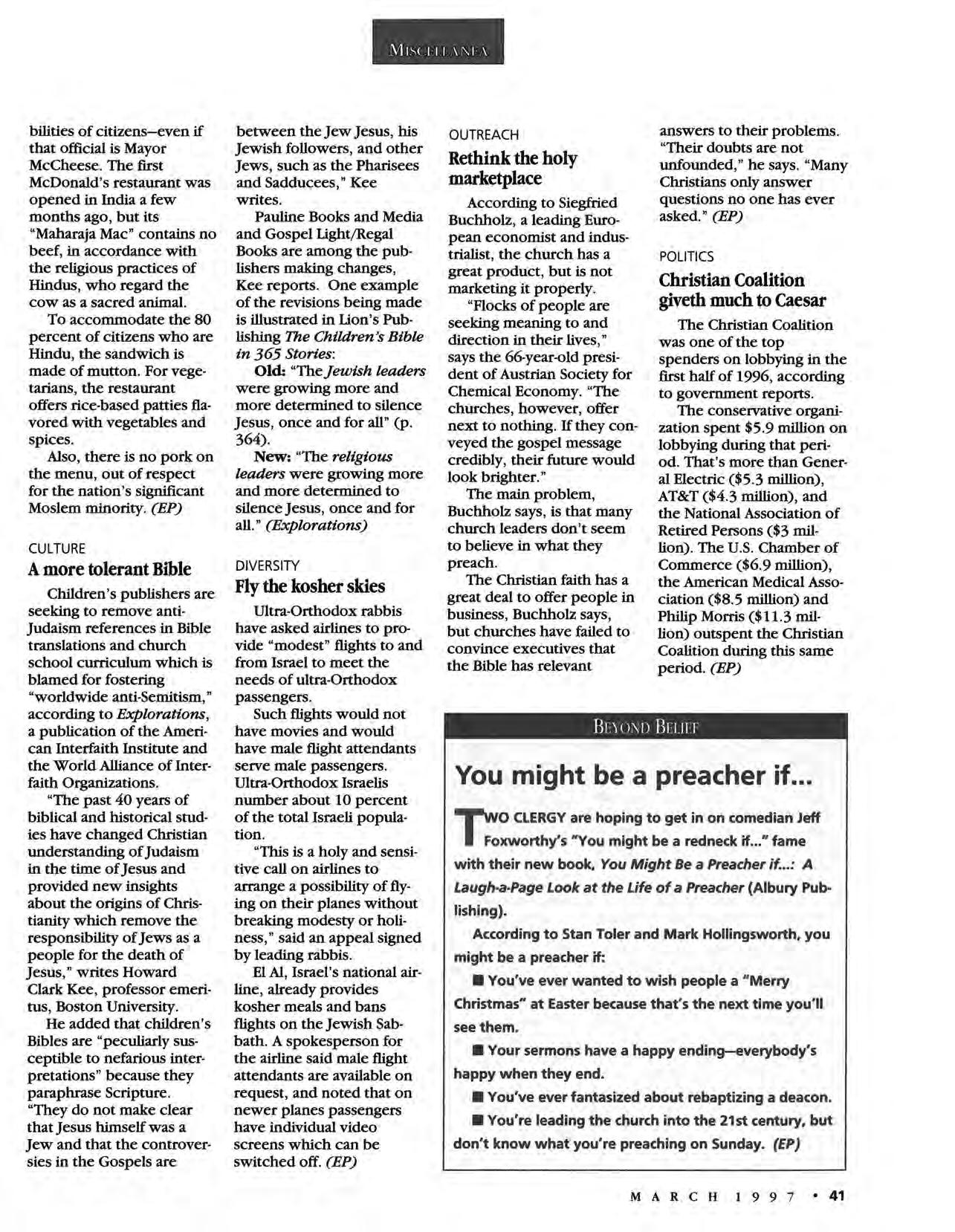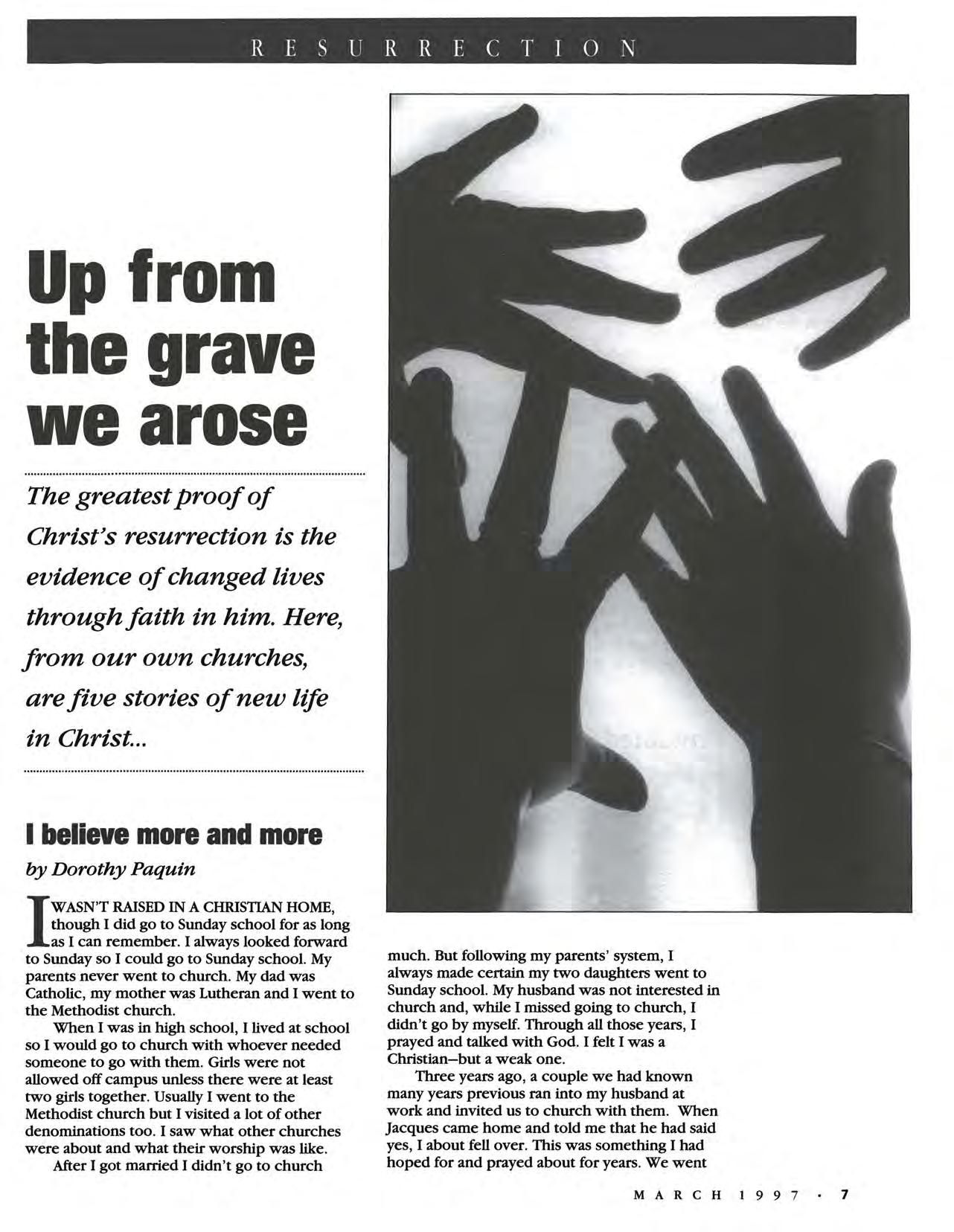 Then, we offer several "conversion" stories that come right out of our churches. Sometimes we're tempted to think the Holy Spirit isn't doing much among us these days. Here's some evidence to the contrary. God is still in the business of changing lives-and we still have a role in that business.