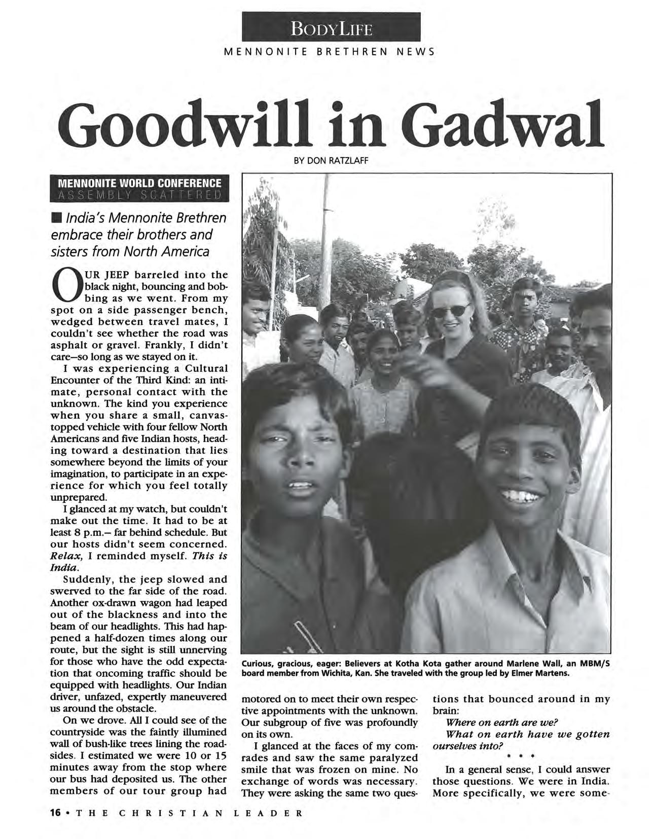 pages 16-25, Leader staff photos by Don Ratzlaff unless other· wise noted; page, 27, MBM/S; page 29, courtesy of Ron Seibel