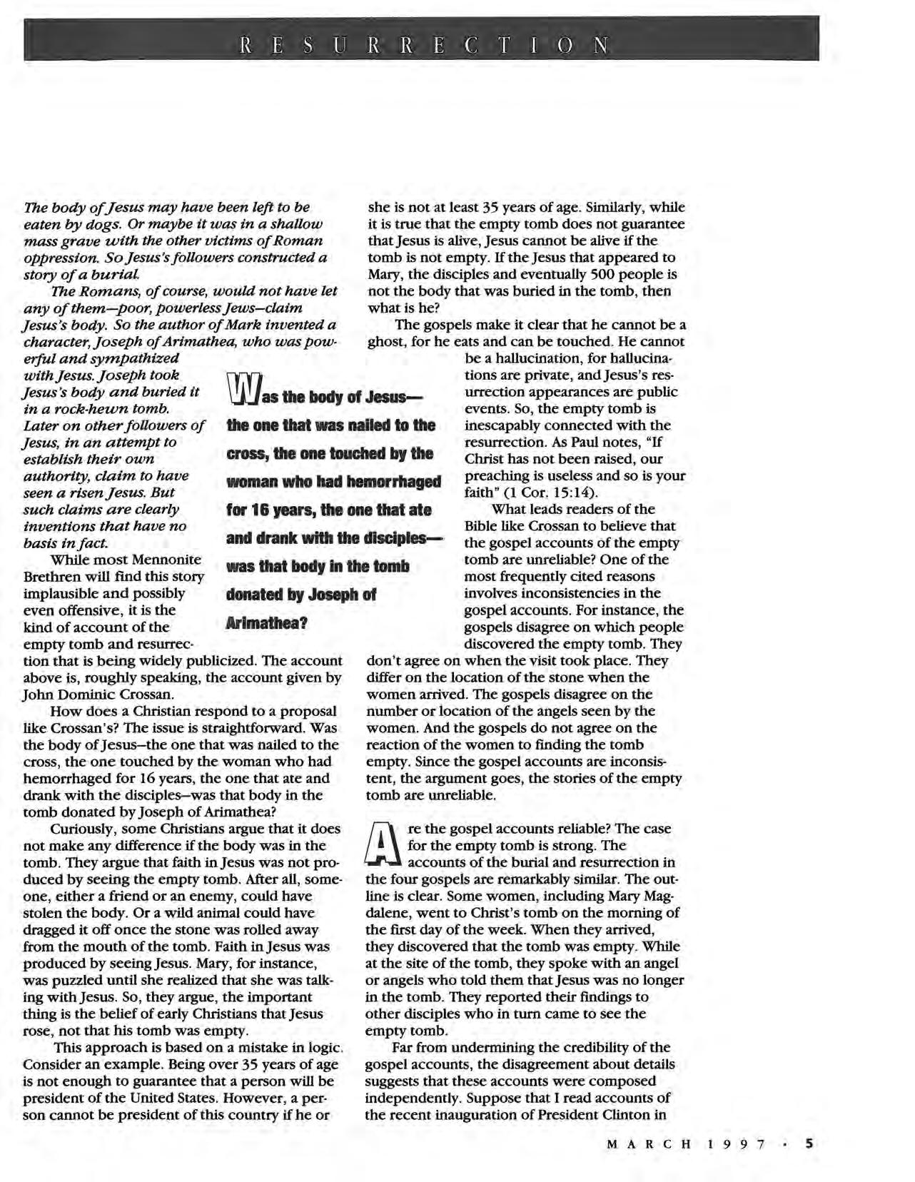 Based on 'The Case For an Empty Tomb, " page 4, and " Up From the Grave We Arose, " page 7.