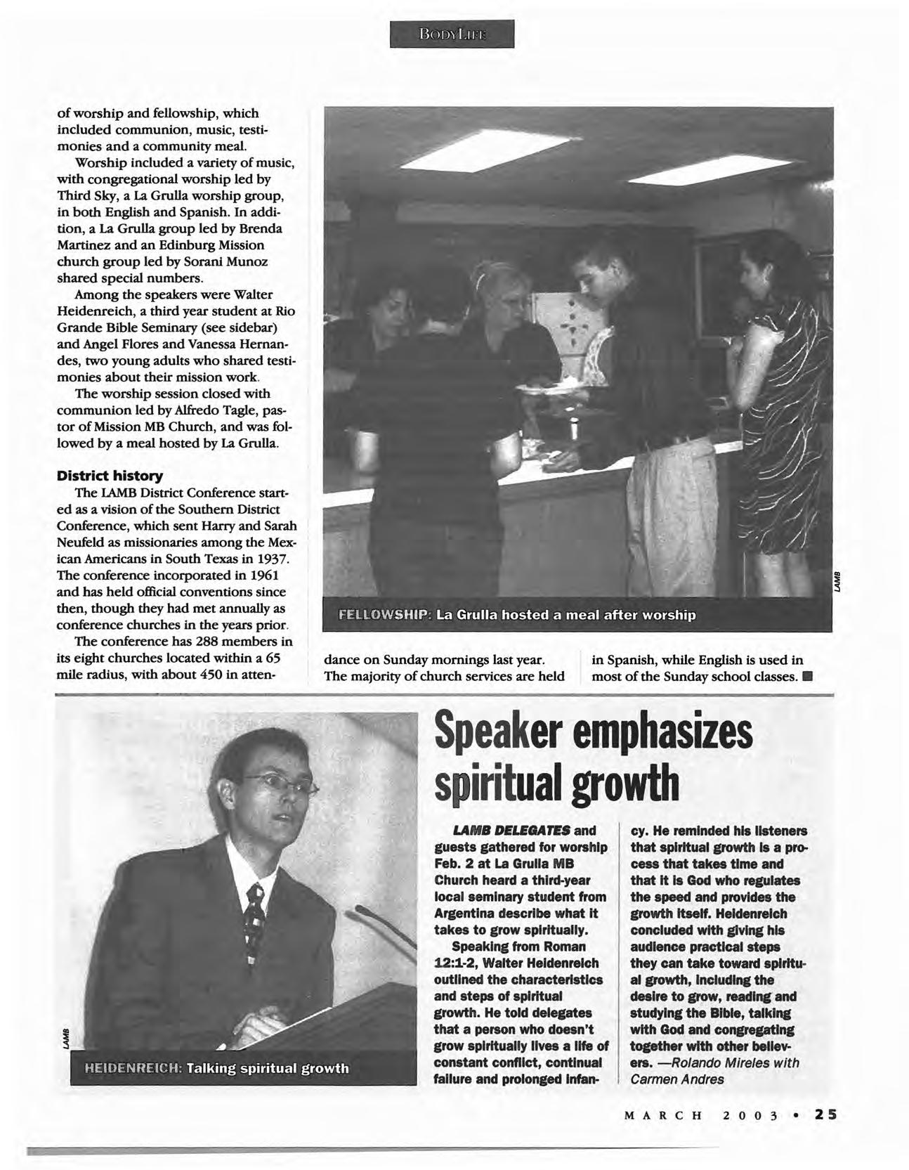Ferndale, Wash. (Good News)Youth pastor John Andres has organized prayer partners for all students and adults from the congregation who will be attending Estes 2003, the national MB youth convention held March 22-25. Vol-