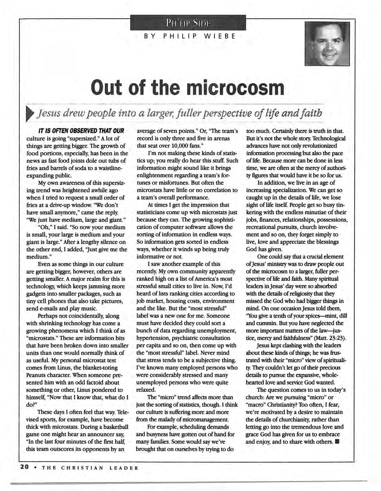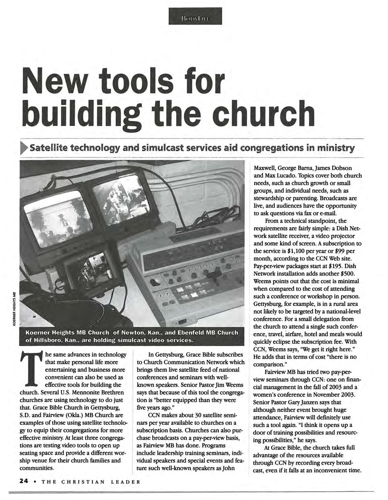 EDITORIAL POUCY: The views expressed in this publication do not necessarily represent the position of the Christian Leader, the Board of Communications or the Mennonite Brethren Church Scripture references are from New International Version unless otherwise noted . The editors invite free-lance article submissions. A SASE must accompany articles.