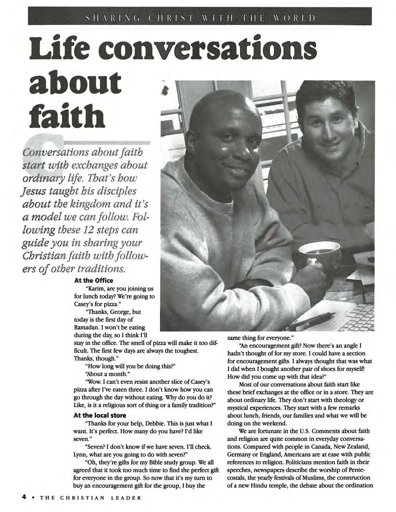 .1 ersations about faith S . with exchanges about '.' .. orilfnary life. That's how Jesus taught his disciples about the kingdom and it's a model we can follow . Following these 12 steps can guide you in sharing your Christia n faith with followers of other traditions.