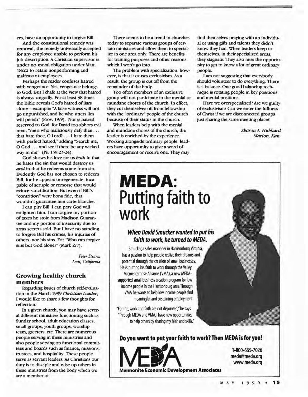 The Christian Leader is a member of the Evangelical Press Association and Meetinghouse, an association of Mennonite and Brethren in Christ editors.