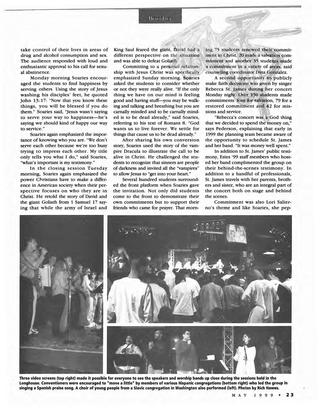 In BodyLife, we also take a look at a Generation Y gathering-Estes '99-that challenged youth to strengthen their commitment to God.