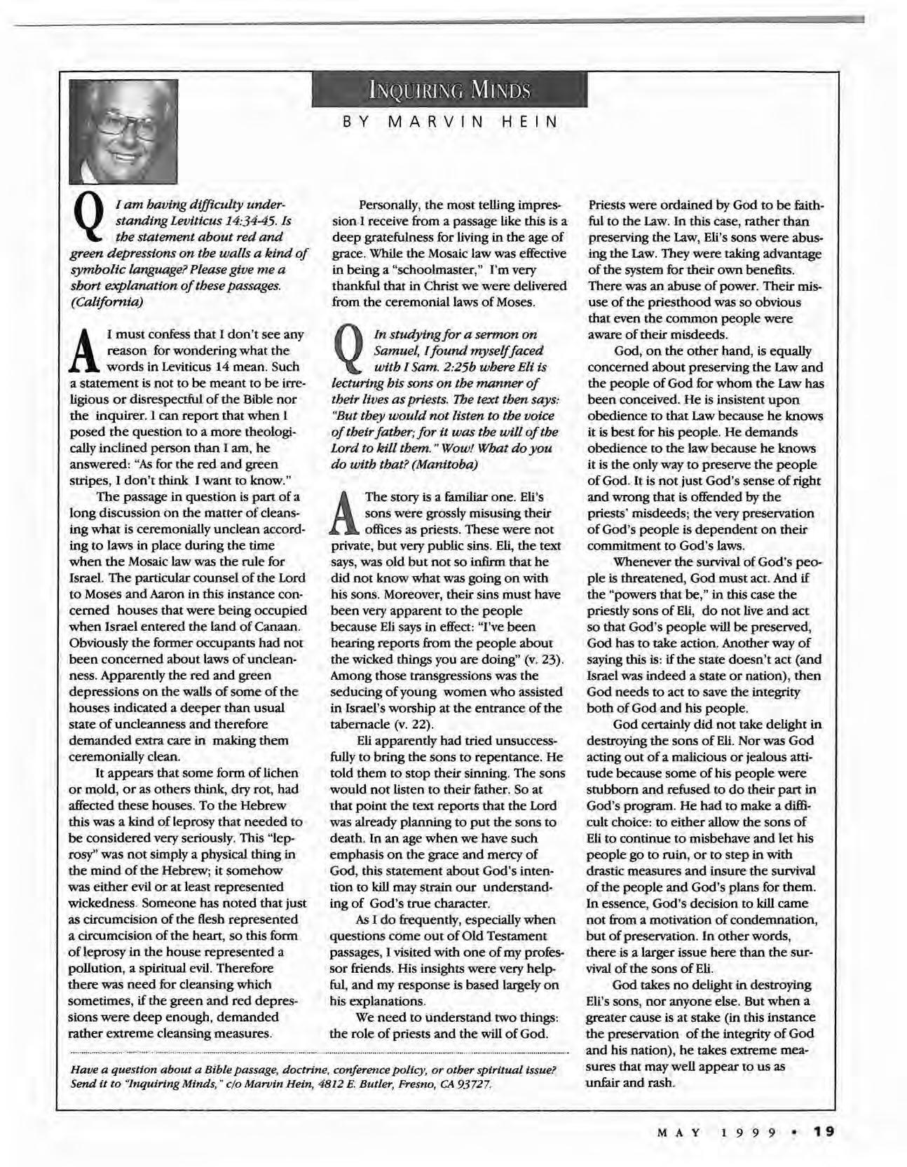 AD: I have been disappointed in the lack of prizewor- DM: Their commitment to holiness--particularly the thy aspects of the younger generation. There seems to Builder (World War II) generation. Being separate from the world and wise in what they expose them- be a downward shift into a more lighthearted outlook on Christian living. However, there is a youthful fun selves to and/or participate in. This seems to be lost on my generation who has seemingly often misused driving this lightheartedness and when that fun is the grace of God for an excuse to sin. As I continue to directed and tapped into the right subject, there is a mature in my faith, I see the temptation, devastation sense of desire for knowledge relating to the Bible. and separation from God that is brought on because This true desire is one that cannot be rocked by Satan or the outside world. What a praise that desire is! we are not careful to screen the images, material and activities that we allow in our lives. Those who practice wise discernment in this area have a strong foundation which offers stability and security.