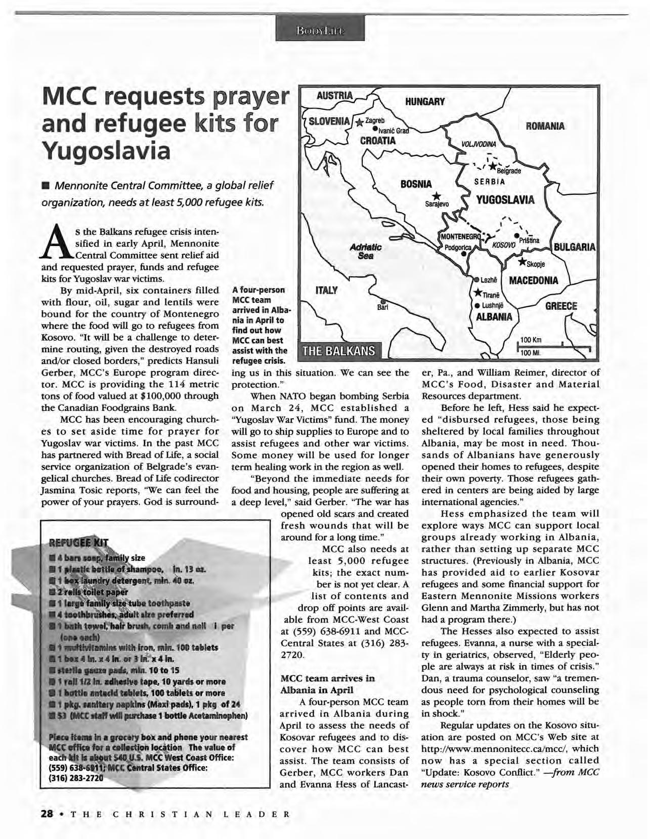 • MCC requests prayer and refugee kits for Yugoslavia 28