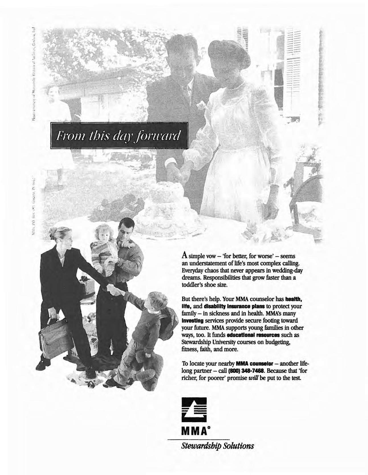 home. We make it our business to find them and to invite them in. As we enter this millennium, Tim and his contemporaries are wondering, "Where is the faith that's right for me?" We are bold enough to declare that just as our faith has proved "right for us," so we believe it promises to "be right for Tim" -not because we have chosen God, but because he has chosen us. We invite Tim to join us as together we commit ourselves to a covenant of lifelong love and loyalty to Jesus Christ and to one another. •