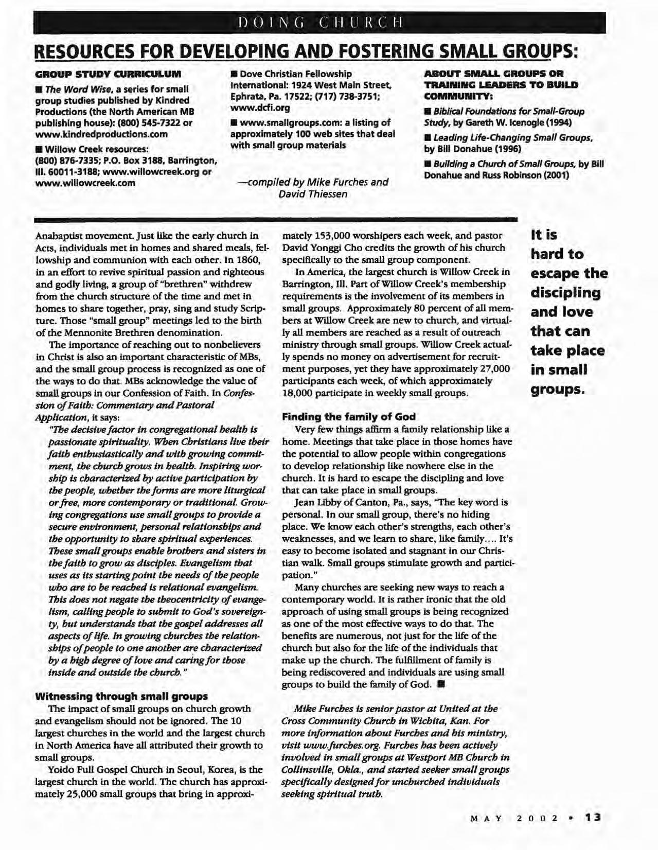 What hurdles face small groups, and how can we overcome them? BY DAVID