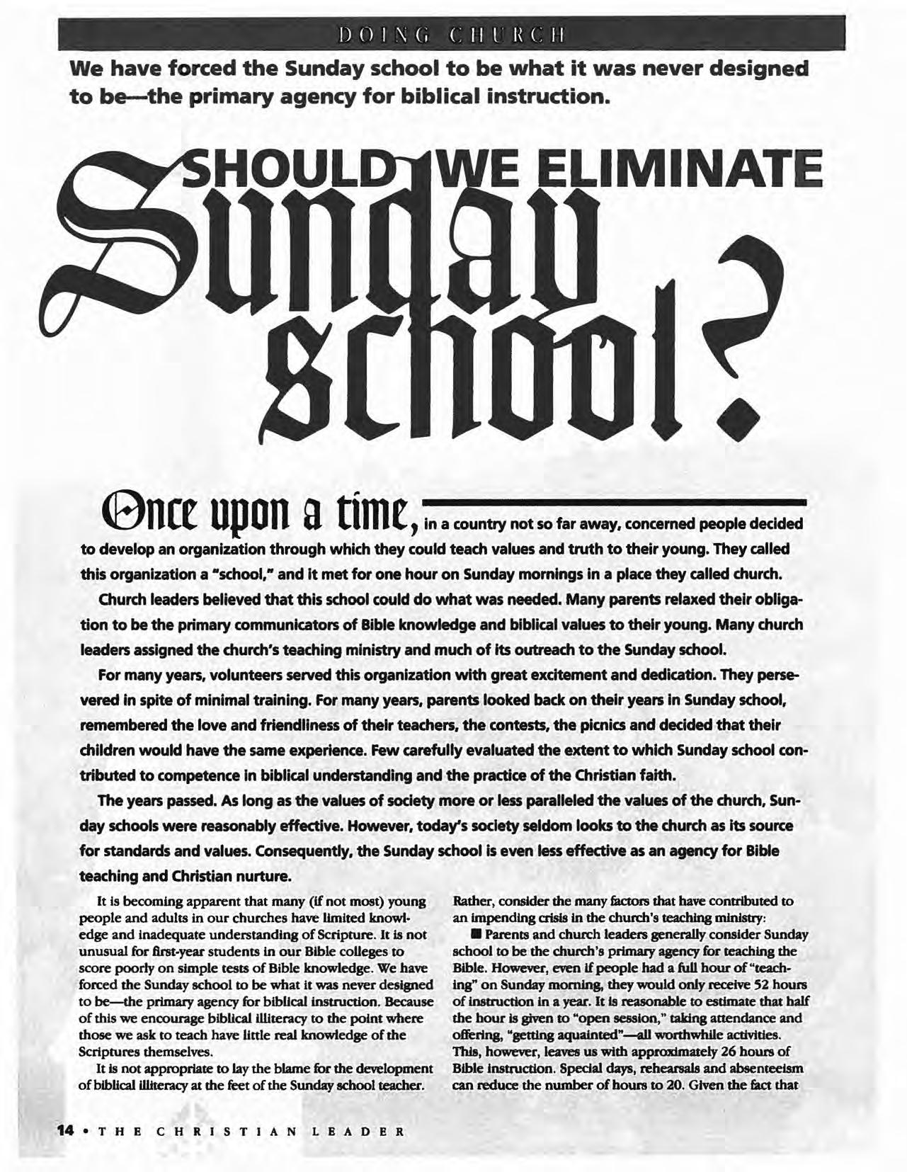 We have forced Sunday school to be what it was never designed to be-the primary agency of biblical instruction. BY LINDA