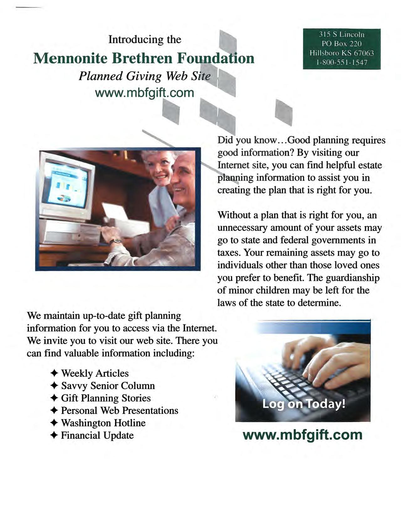 We maintain up-to-date gift planning information for you to access via the Internet. We invite you to visit our web site. There you can find valuable information including: