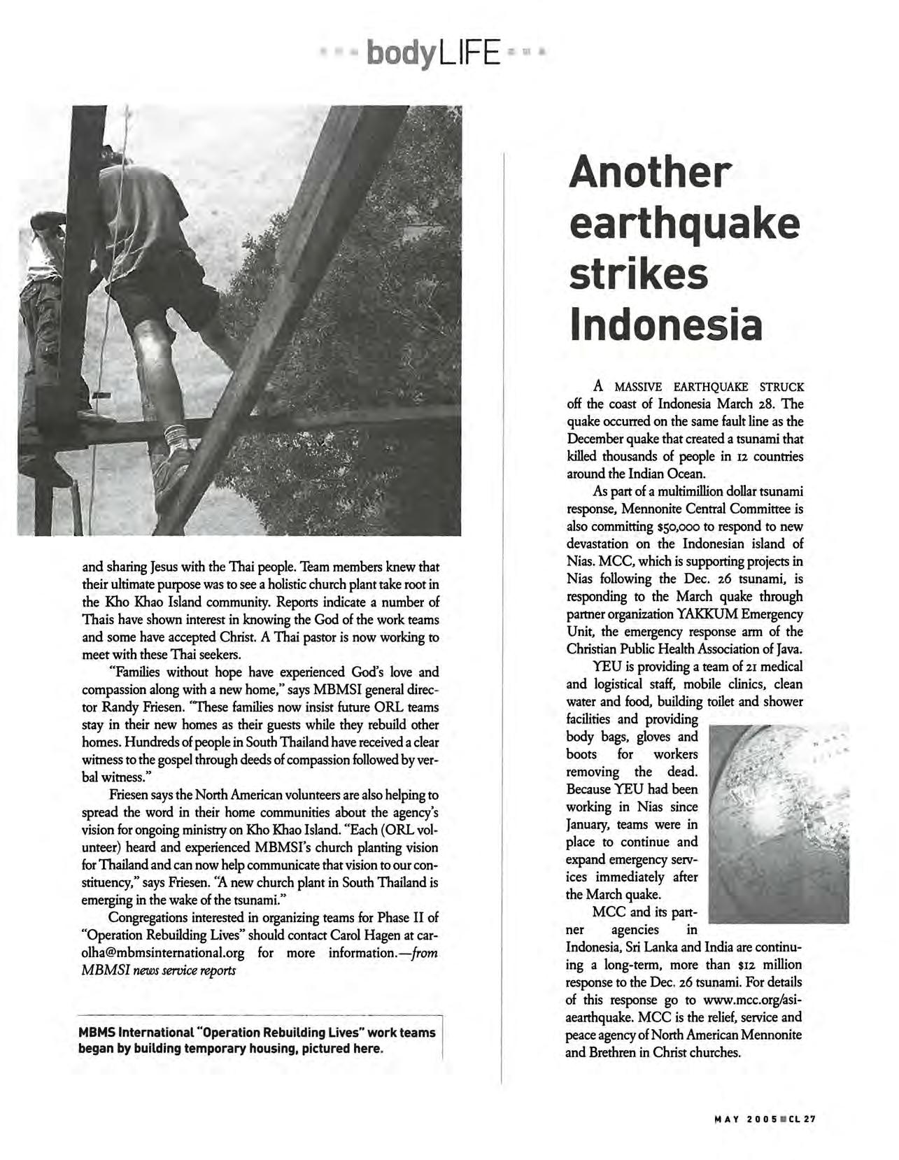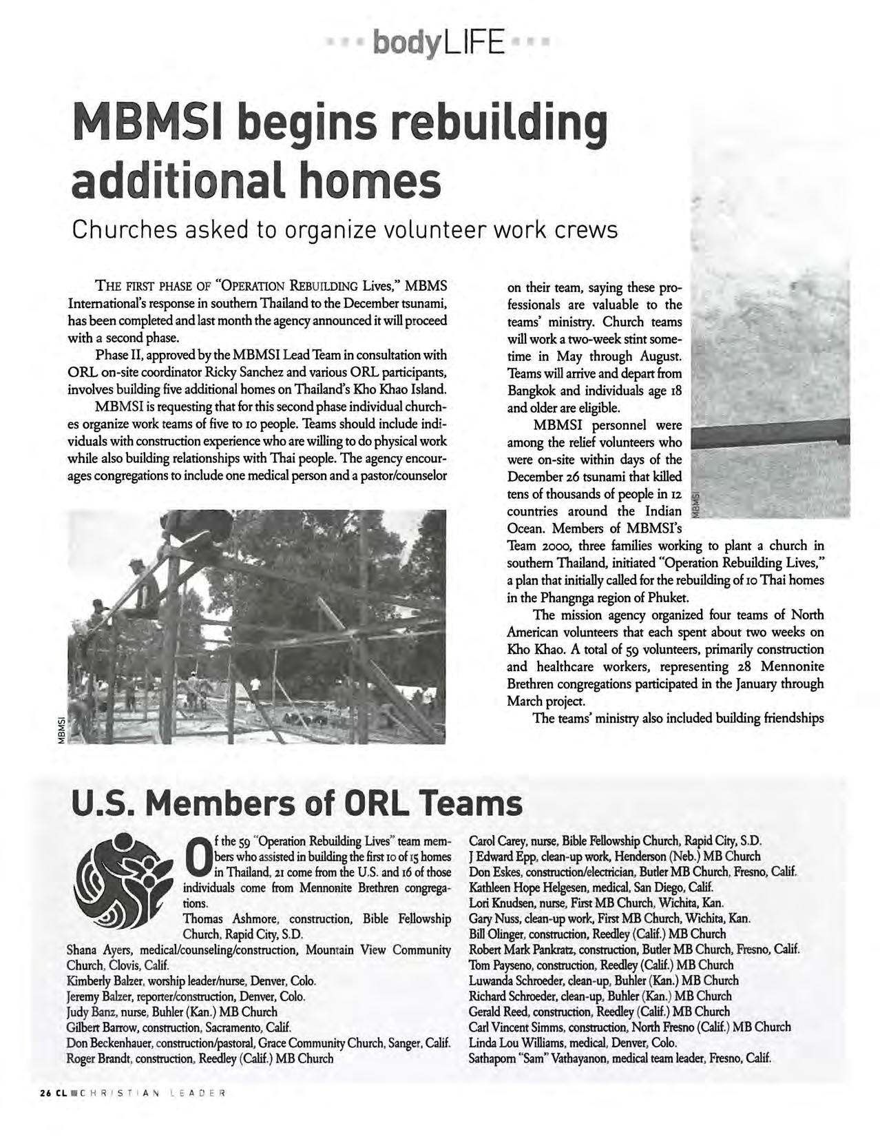24 > Teens challenged to embrace ministry 26 > MBMSI begins rebuilding additional homes