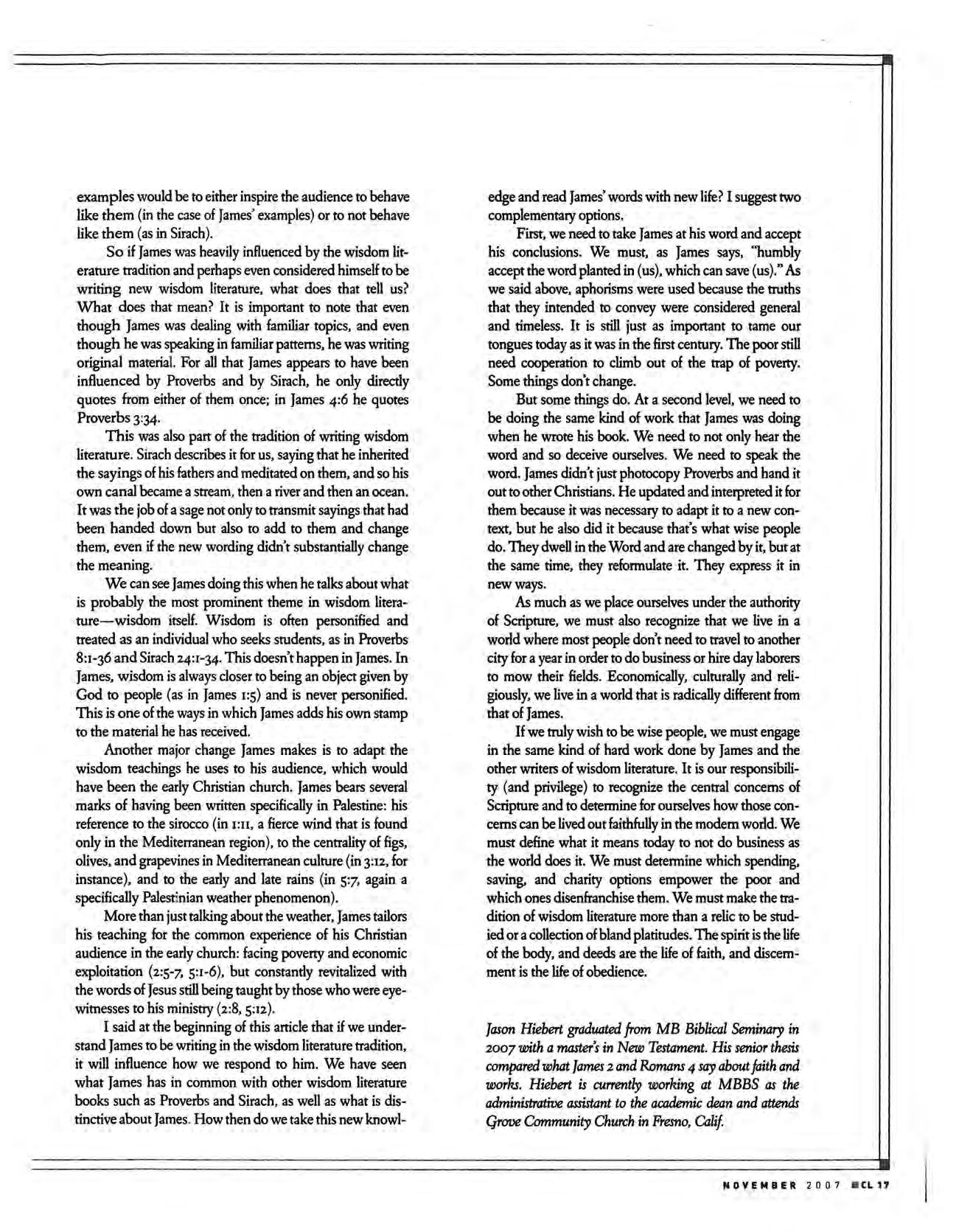 Did you know that the book of James is best read as wisdom literature? Why? And if we read James this way. what does that tell us? How does that change how we understand his message?