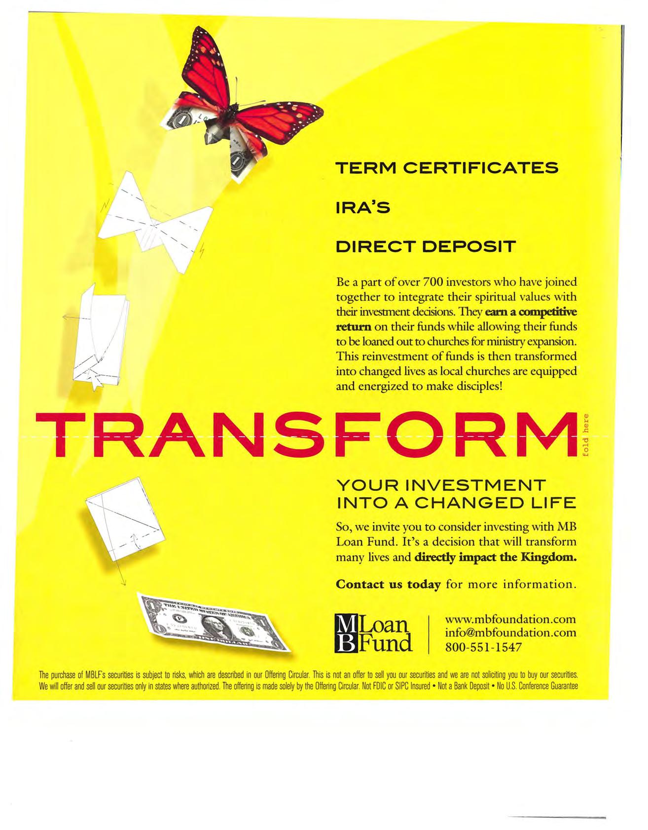 So, we invite you to consider investing with MB Loan Fund. It's a decision that will transform many lives and directly impact the Kingdom. Contact us today for more information.