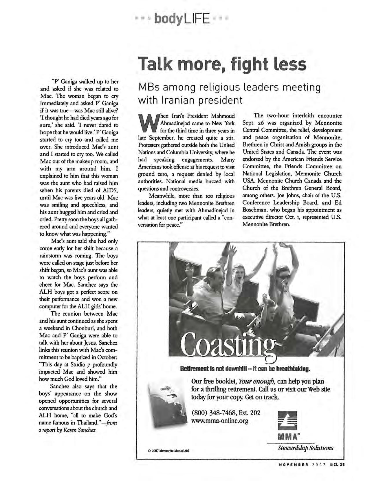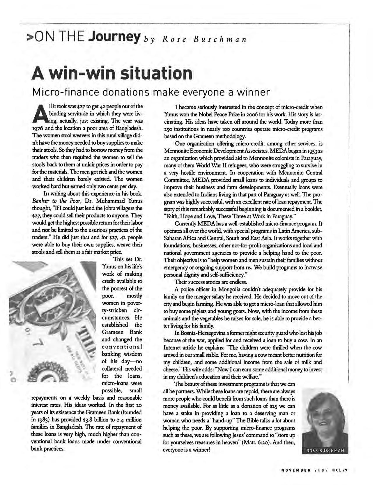 U.S and Canada. She first served with MCC in Lesotho and was MCC's country representative there from 1991 to 1994. She then worked in MCC's Akron office as a resource person and assistant director of Aftica programs before becoming executive director of MCC Ontario.
