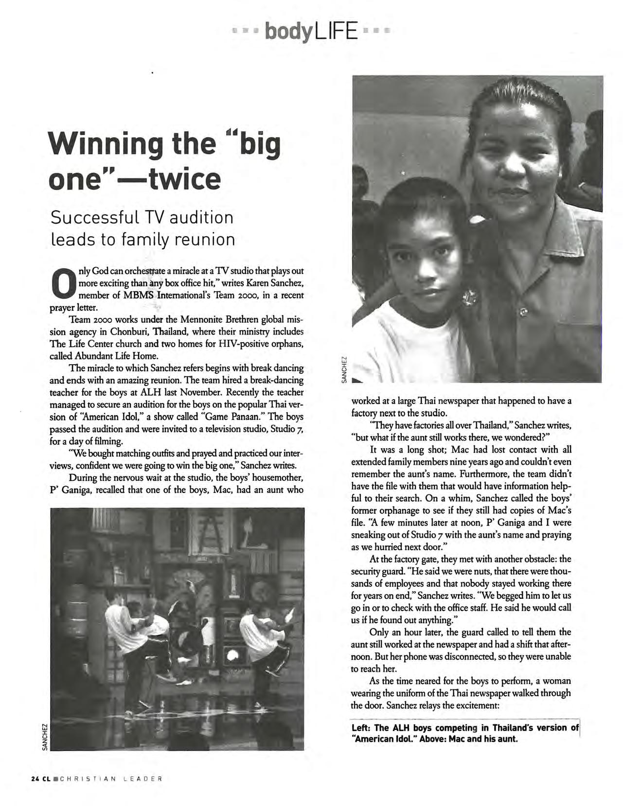 EDITORIAL POLICY The views expressed in th is publication do not necessarily represent the position of the Christian Leader, the U S Conference Leadership Board or th e Mennoni te Brethren Church Scripture reierences are from New International Version unless otherwise noted The editors invite freelance article submissions A SASE must accompany article s.
