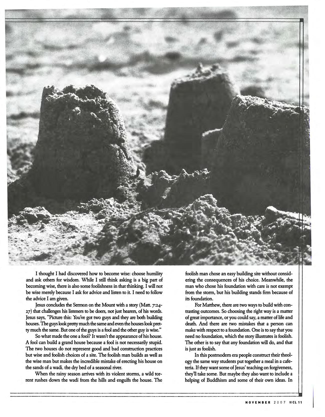Je sus' words about fooli sh and wise living should get us thinking about the foundation on which we bu ild.