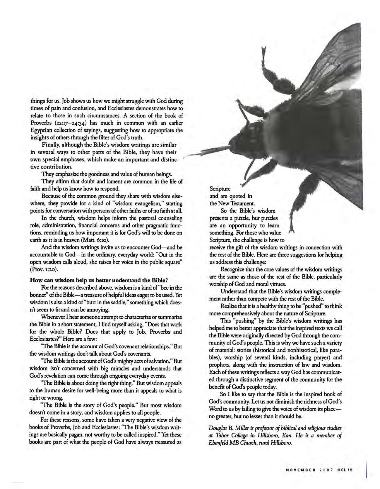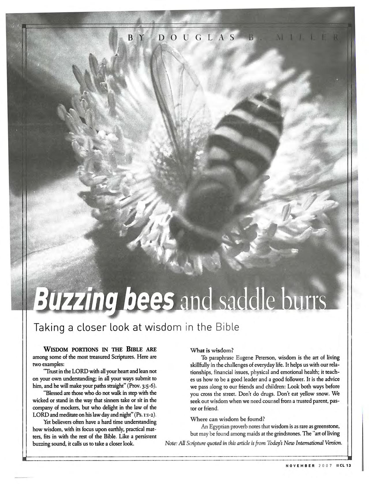 Although we treasure the wisdom offered in books like Proverbs. we also at times have a hard time understanding how these practical "wisdom sayings" fit with the rest of the Bible. Like a persistent buzzing bee. we are called to take a closer look at what the Bible says about wisdom and to let its words prick our thinking.