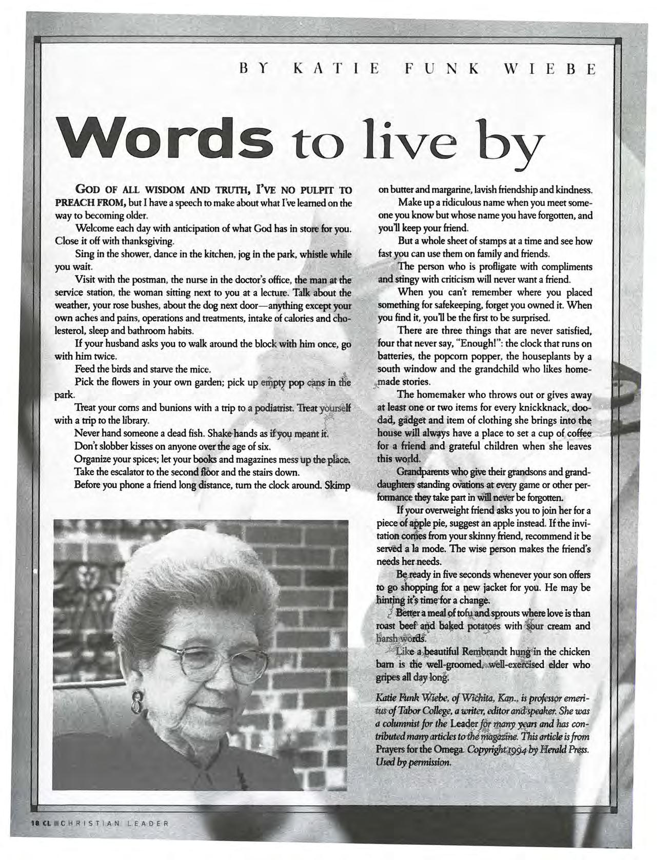 18 WORDS TO LIVE BY by Katie Funk Wiebe