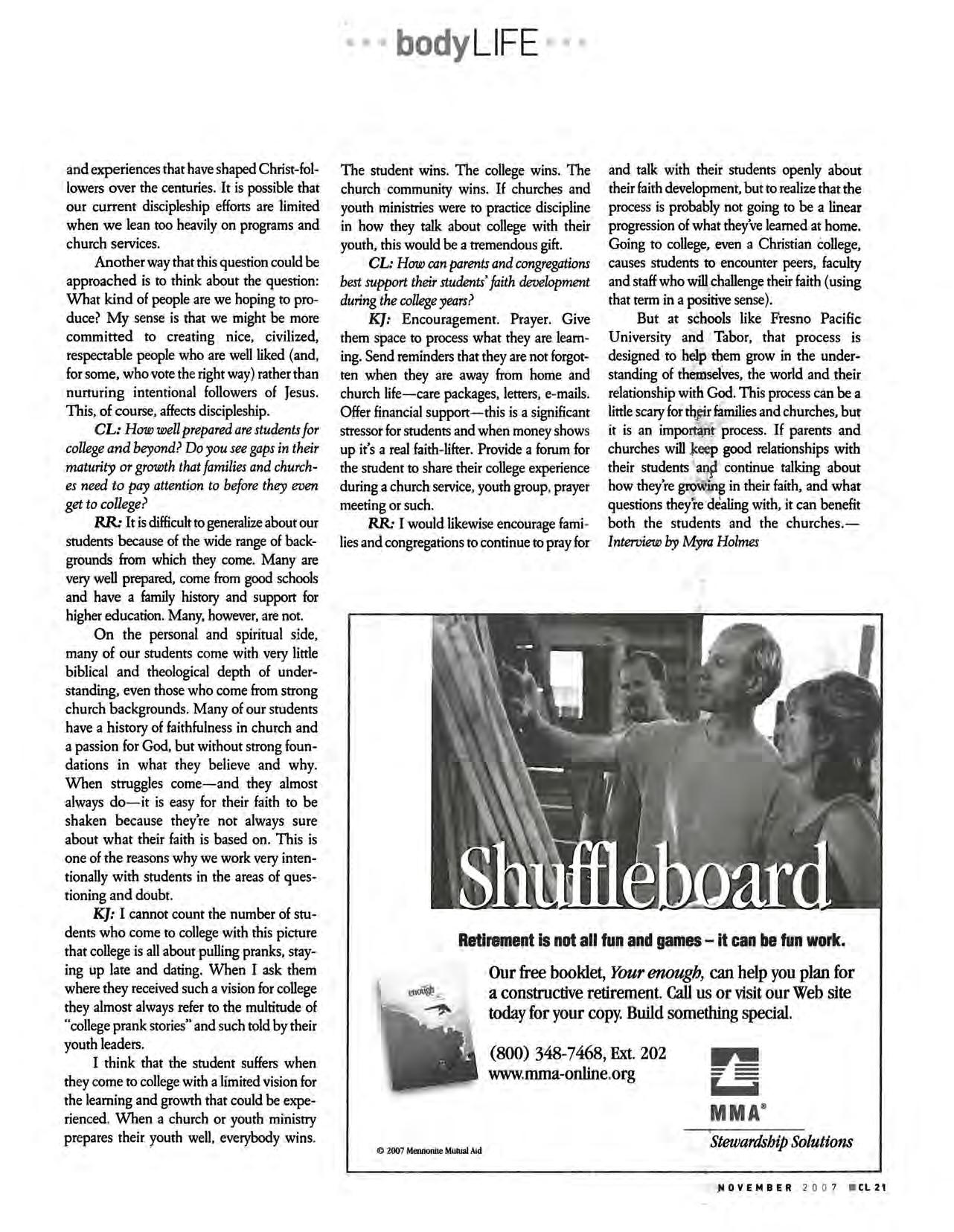 Regardless of the number of parties planned, our celebration will no doubt recognize the people and the theology and ideas that have shaped who Mennonite Brethren are today and that will guide our future. Within the worldwide Mennonite and Brethren in Christ fellowship, we Mennonite Brethren are unique because we are truly a global denomination, and that's worth celebrating. So for now, draw a big red circle on your calendar around the year 2010 and watch for more information.-CF
