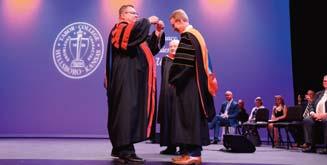 Three former presidents participated in the ceremony by speaking blessings, presenting the presidential medallion or reading Scripture: Vernon Janzen (1980-1987), Larry W. Nikkel (19992007) and Jules Glanzer (2008-2021). Nikkel and Glanzer read prayers from former presidents LeVon