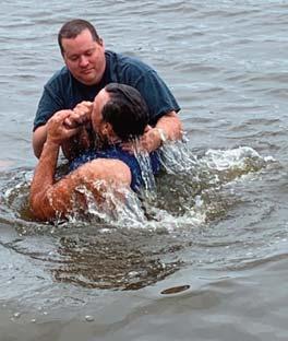 Left: Pastor Tim Hall baptizes a new member in Butterfield Lake. BCBC welcomed two new members Sept. 18 as part of the congregation’s celebration of its 100th anniversary.