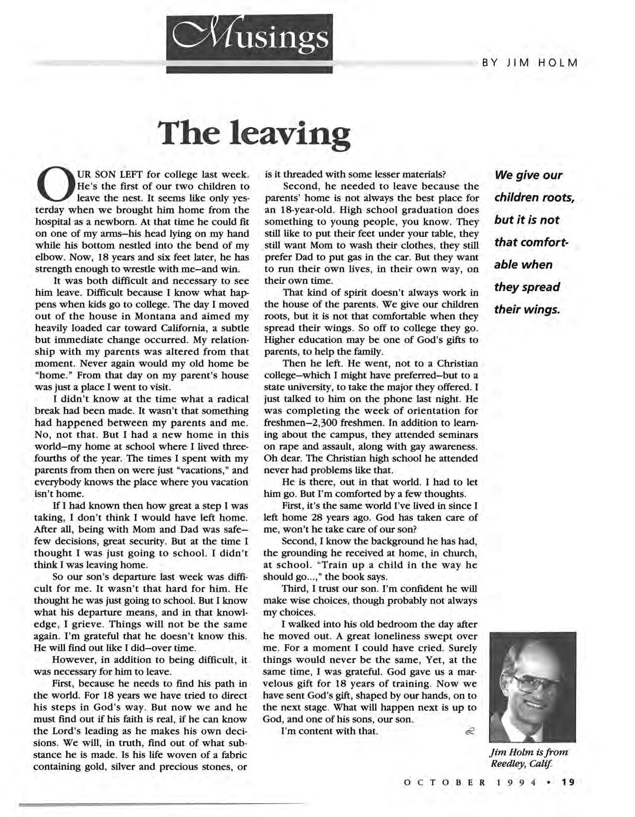 EDITORIAL POLICY: The views and opinions of our writers and advertisers are their own and do not necessarily represent the position of The Christian Leader, the Board of Communicat ions or the Mennonite Brethren Church. The editors invite free-lance article submissions , but ask that each submission be accompanied with a SASE The editors reserve the right to edit, condense or refuse all copy submitted for publication; anonymous contributions will not be published.