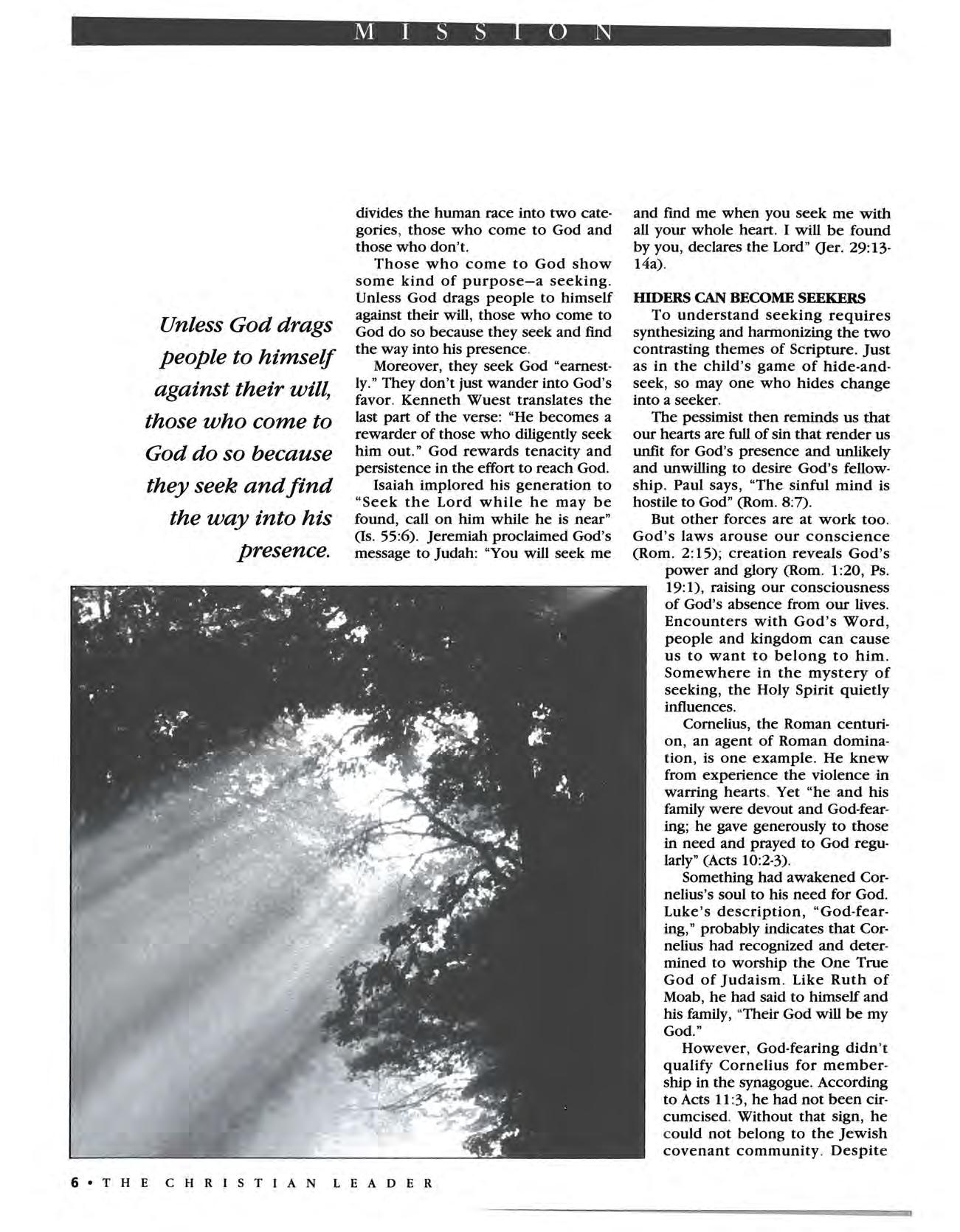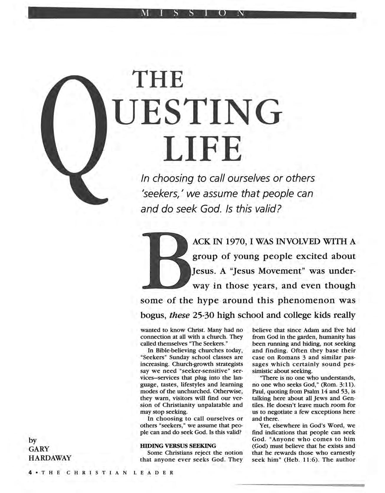 Do PEOPLE SEEK GOD or does God seek people? And how does the answer to that question affect our view of mission? That's one of the provocative questions posed in this issue. Gary Hardaway has a few thoughts on the topic. His article begins on page 4.