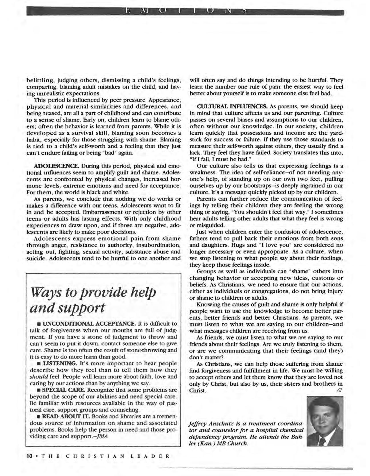 Following that, Jeffrey Anschutz explores the realm of guilt and shame. He says the two feelings are related, but are really quite different . Knowing the difference can help us build each other up in the home and in the church . It'd be a shame to skip that article, which begins on page 8.